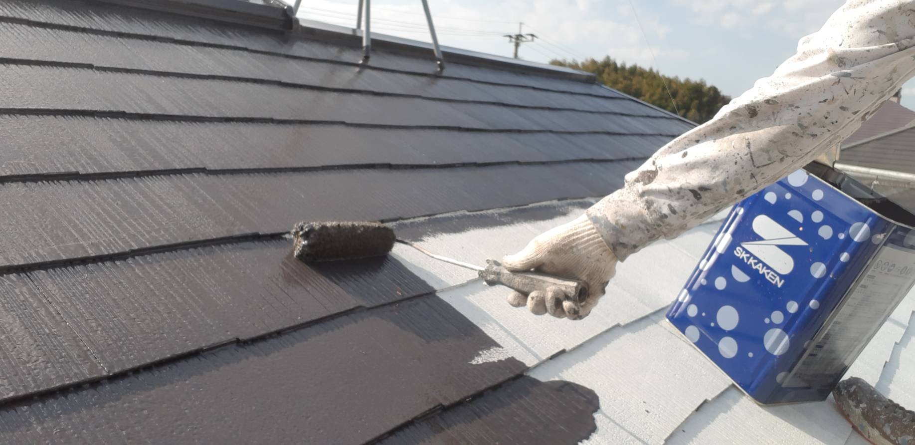 ホーム » 福岡県自由ヶ丘南H様邸施工4日目中間検査屋根縁切り中塗り外壁中塗り作業