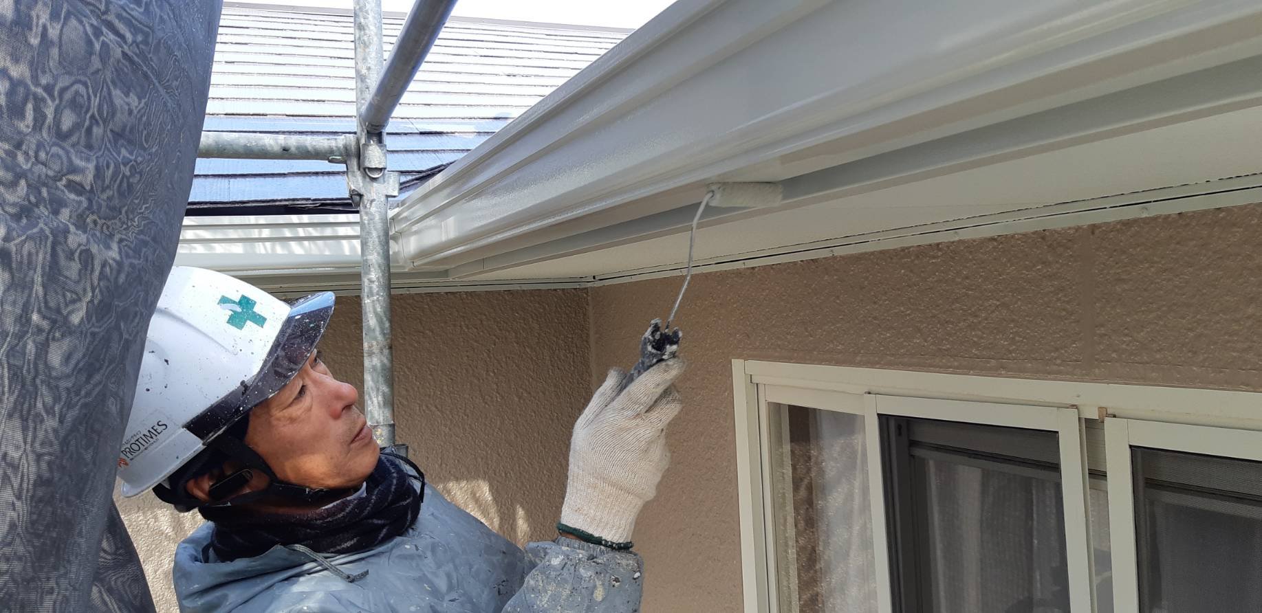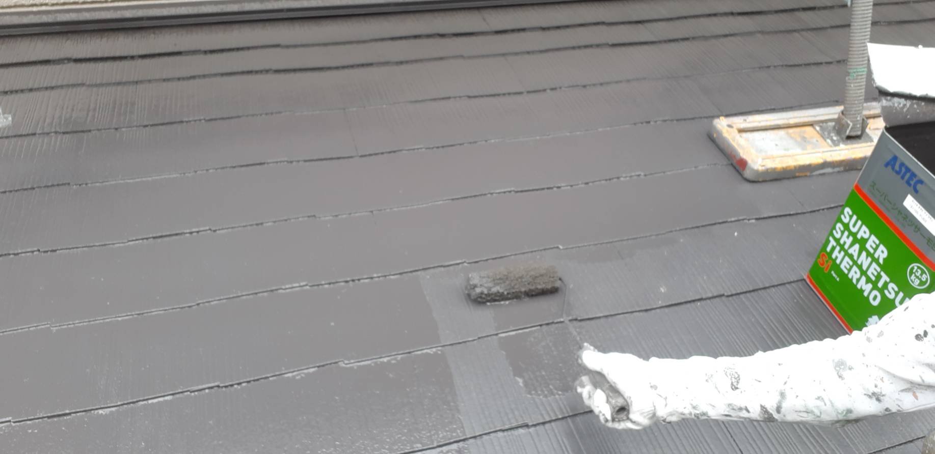 福岡県自由ヶ丘南H様邸施工6日目屋根上塗り付帯塗装作業