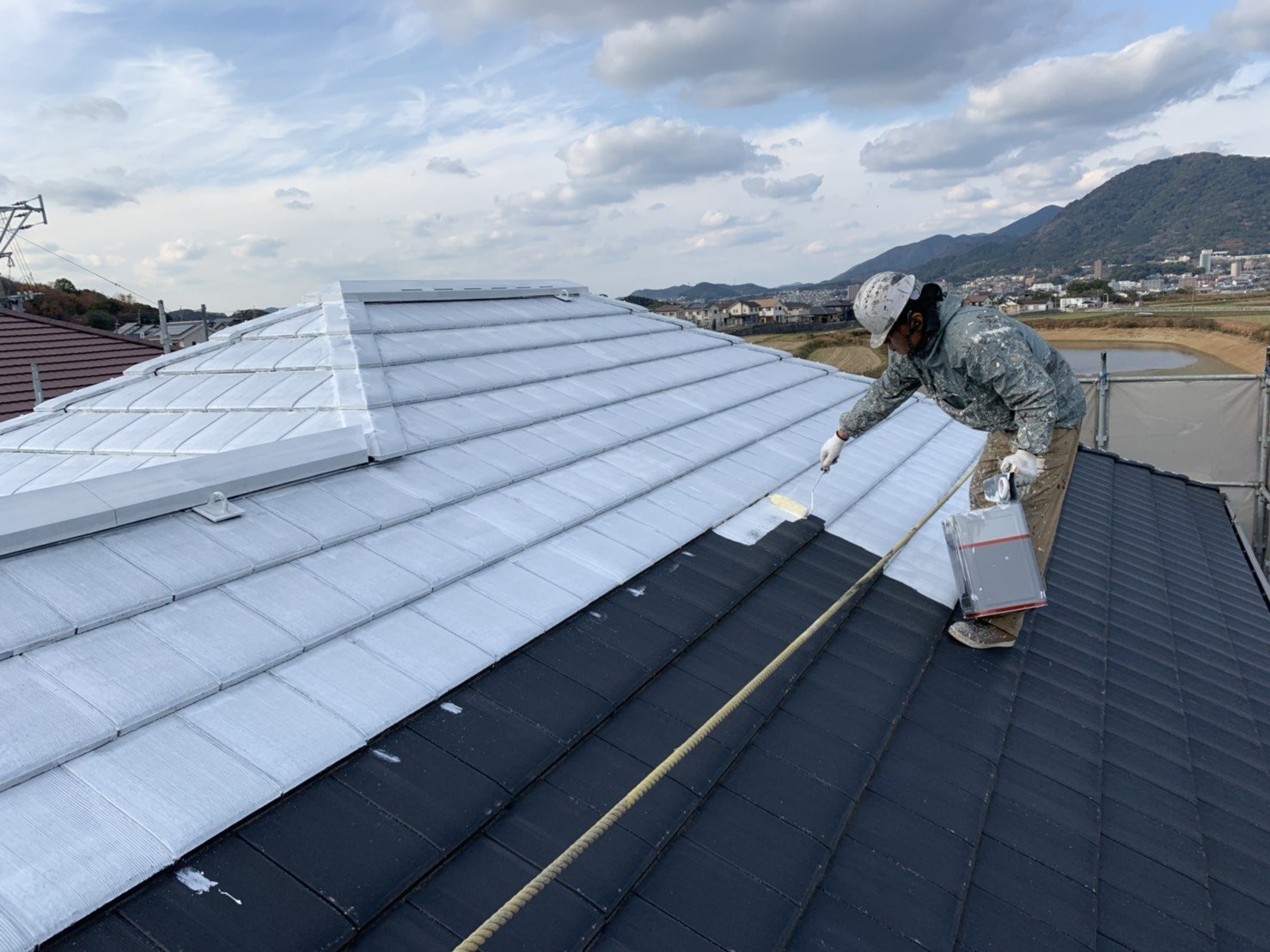 福岡県宗像市広陵台M 様邸施工4日目屋根下塗り外壁下塗り作業