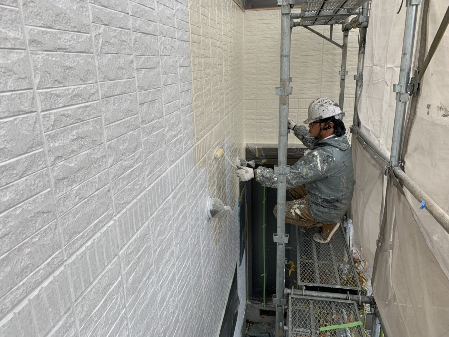 福岡県宗像市広陵台M 様邸施工5日目中間検査屋根中塗り外壁中塗り作業