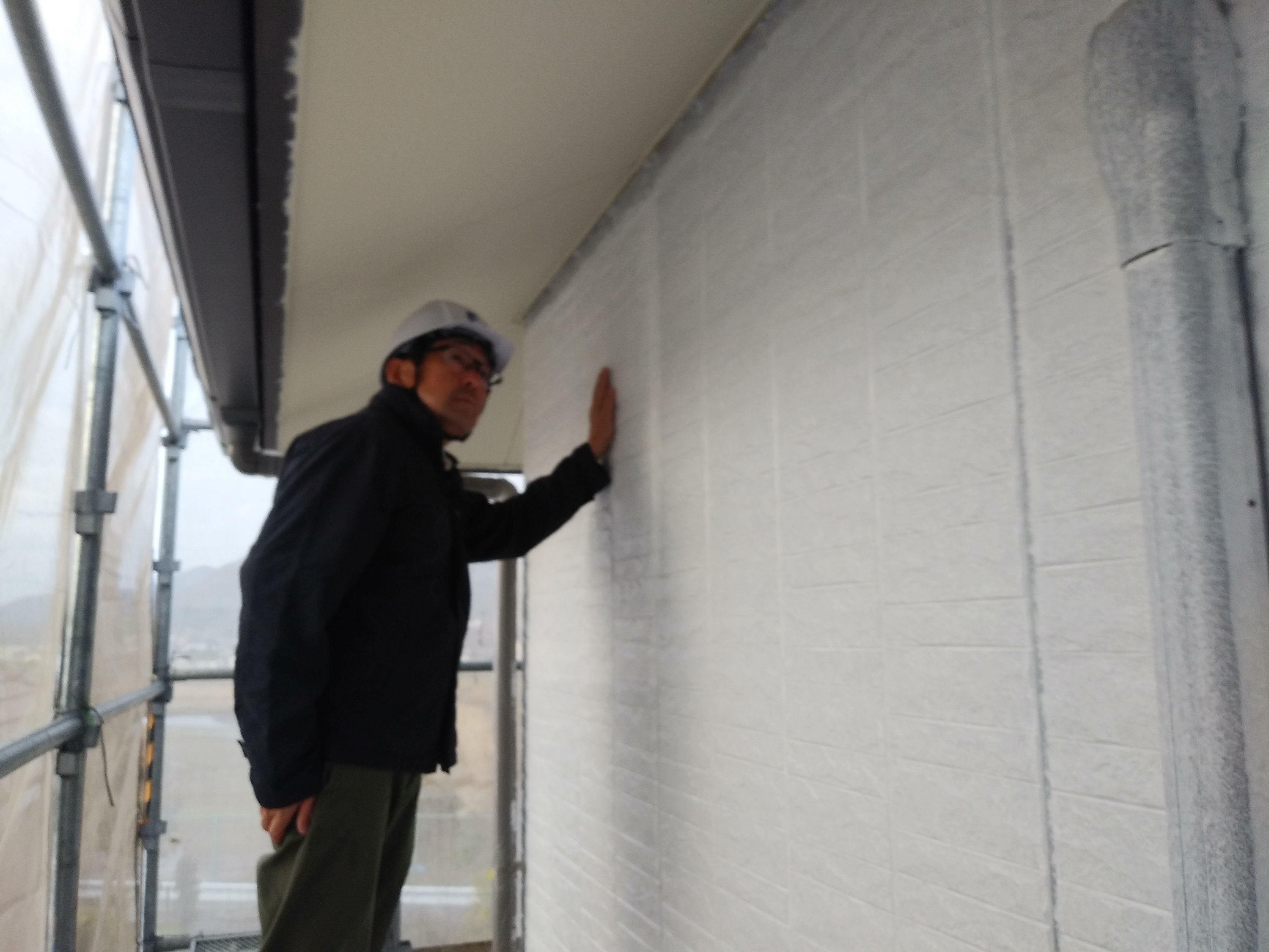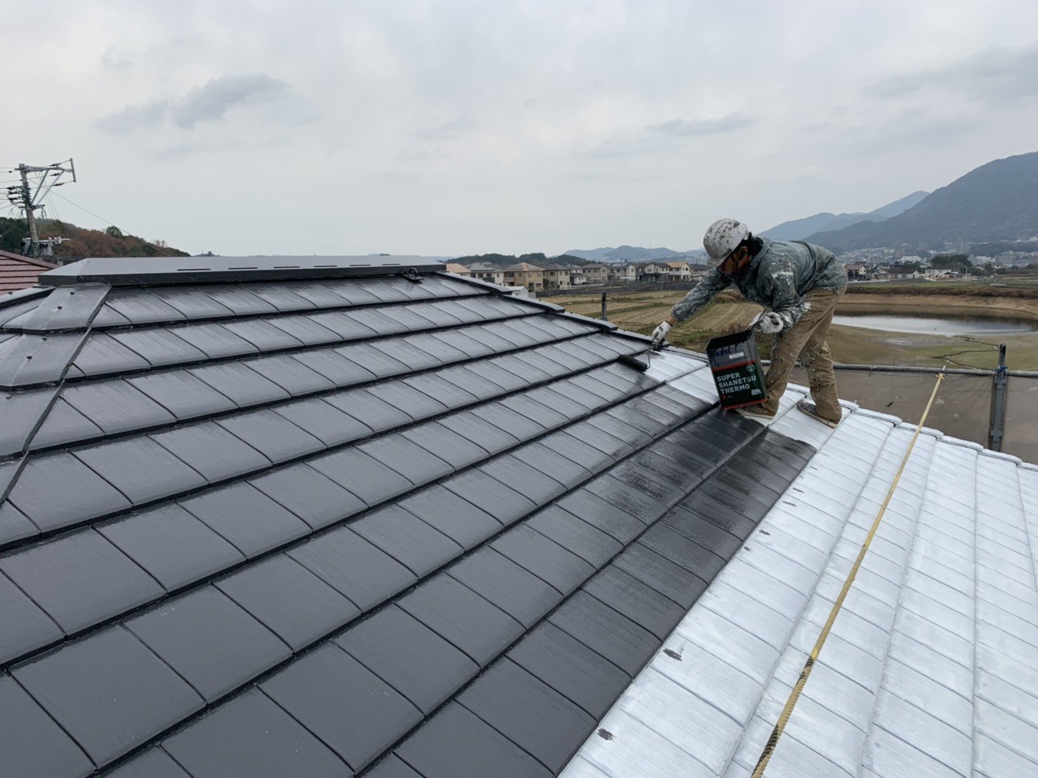 ホーム » 福岡県宗像市広陵台M 様邸施工5日目中間検査屋根中塗り外壁中塗り作業