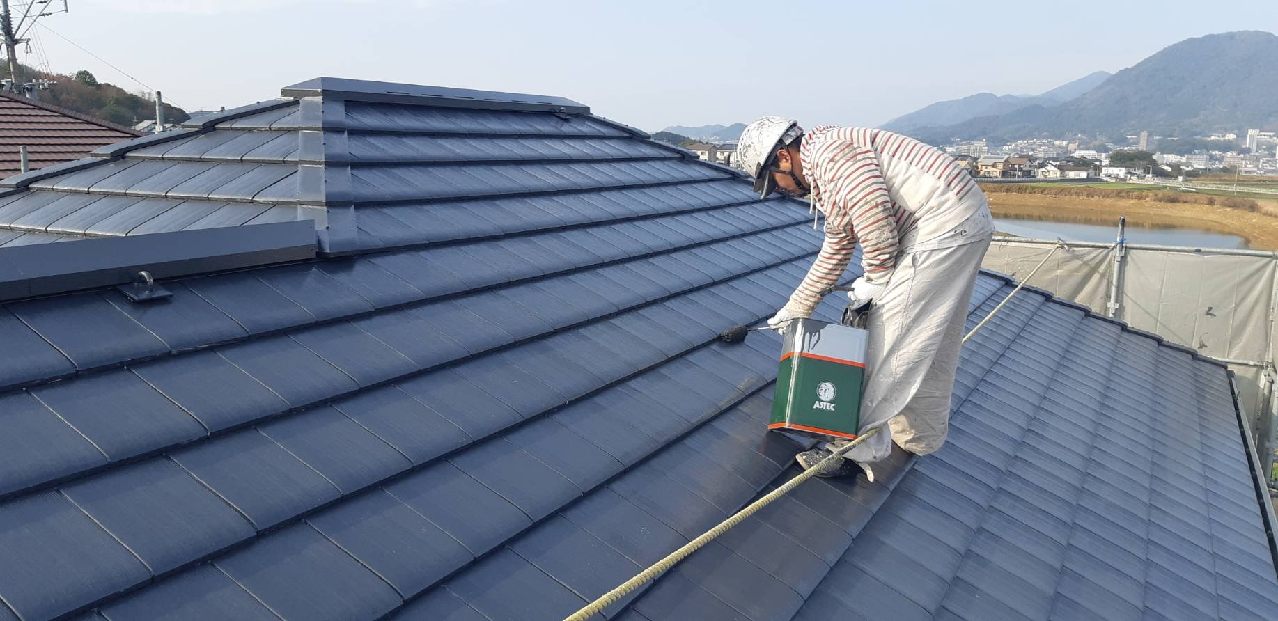 ホーム » 福岡県宗像市広陵台M 様邸施工7日目屋根上塗り付帯塗装修正作業
