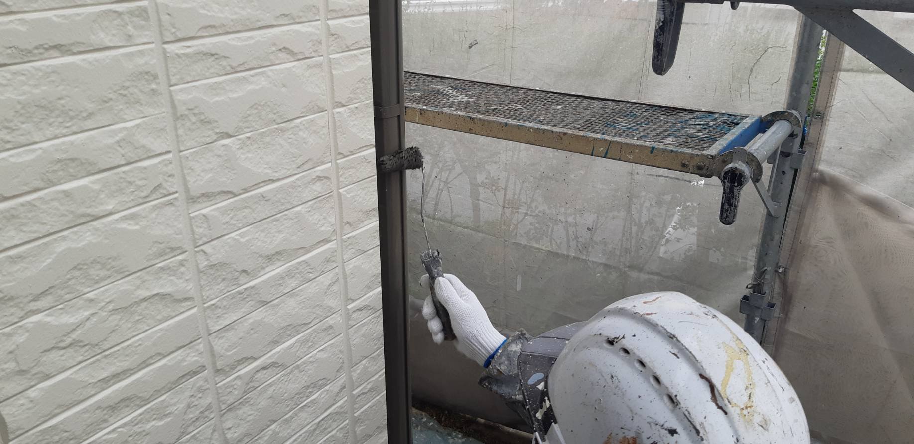 福岡県宗像市広陵台M 様邸施工7日目屋根上塗り付帯塗装修正作業