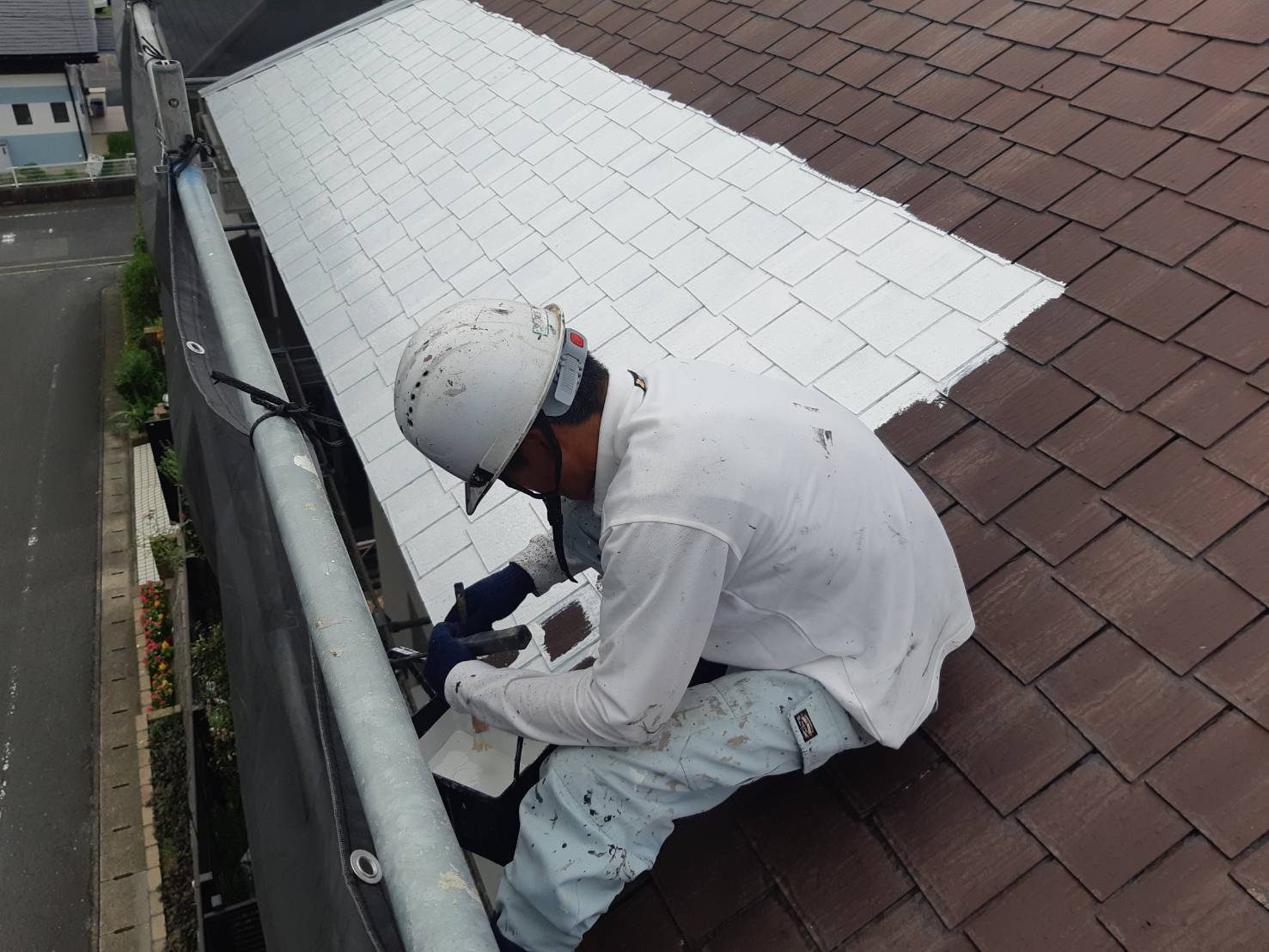 明日の作業内容は屋根中塗り外壁下塗りを行う予定です‼️