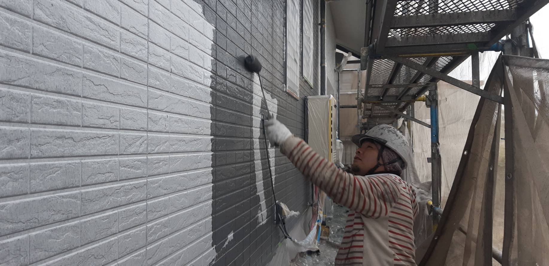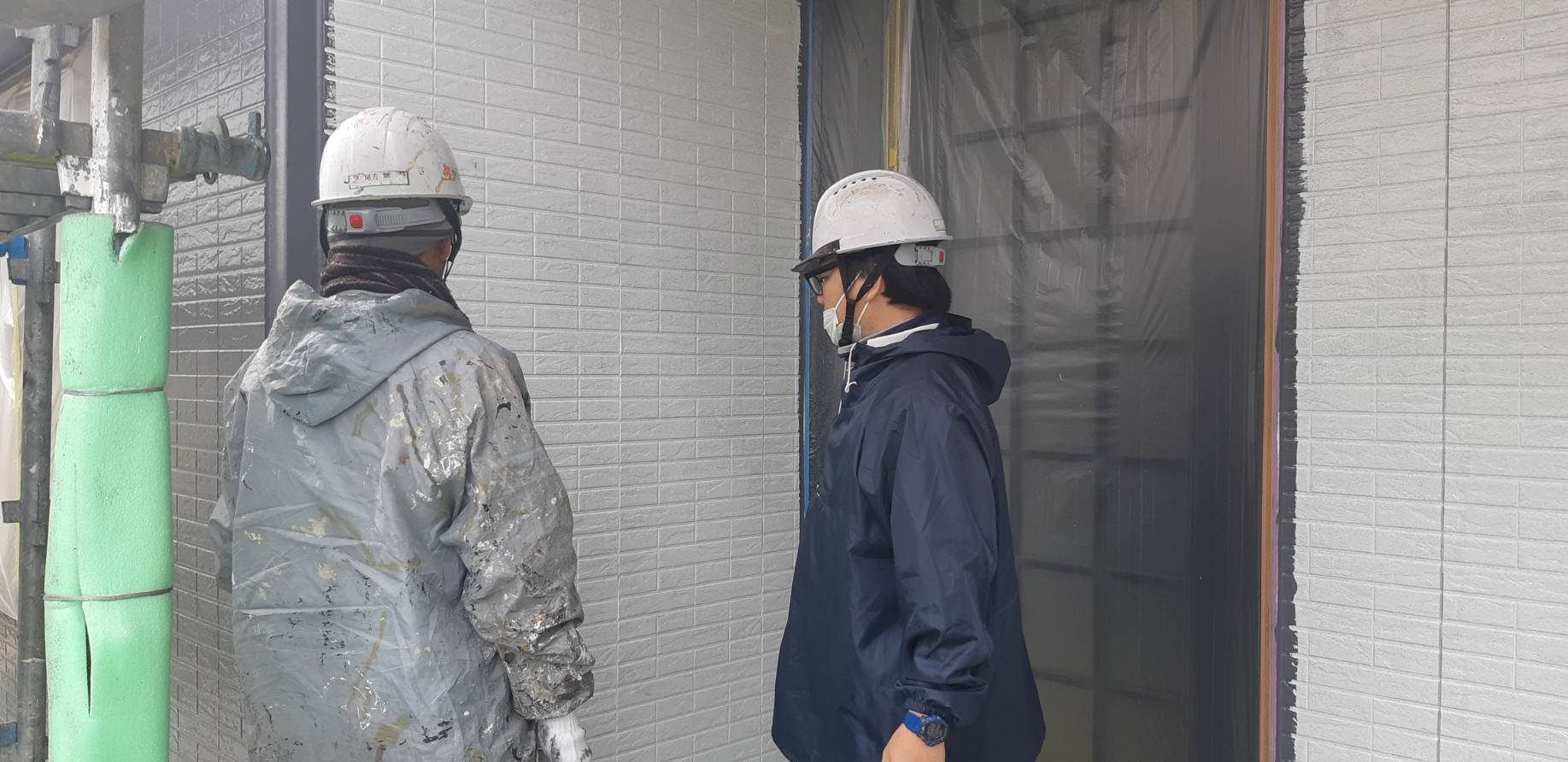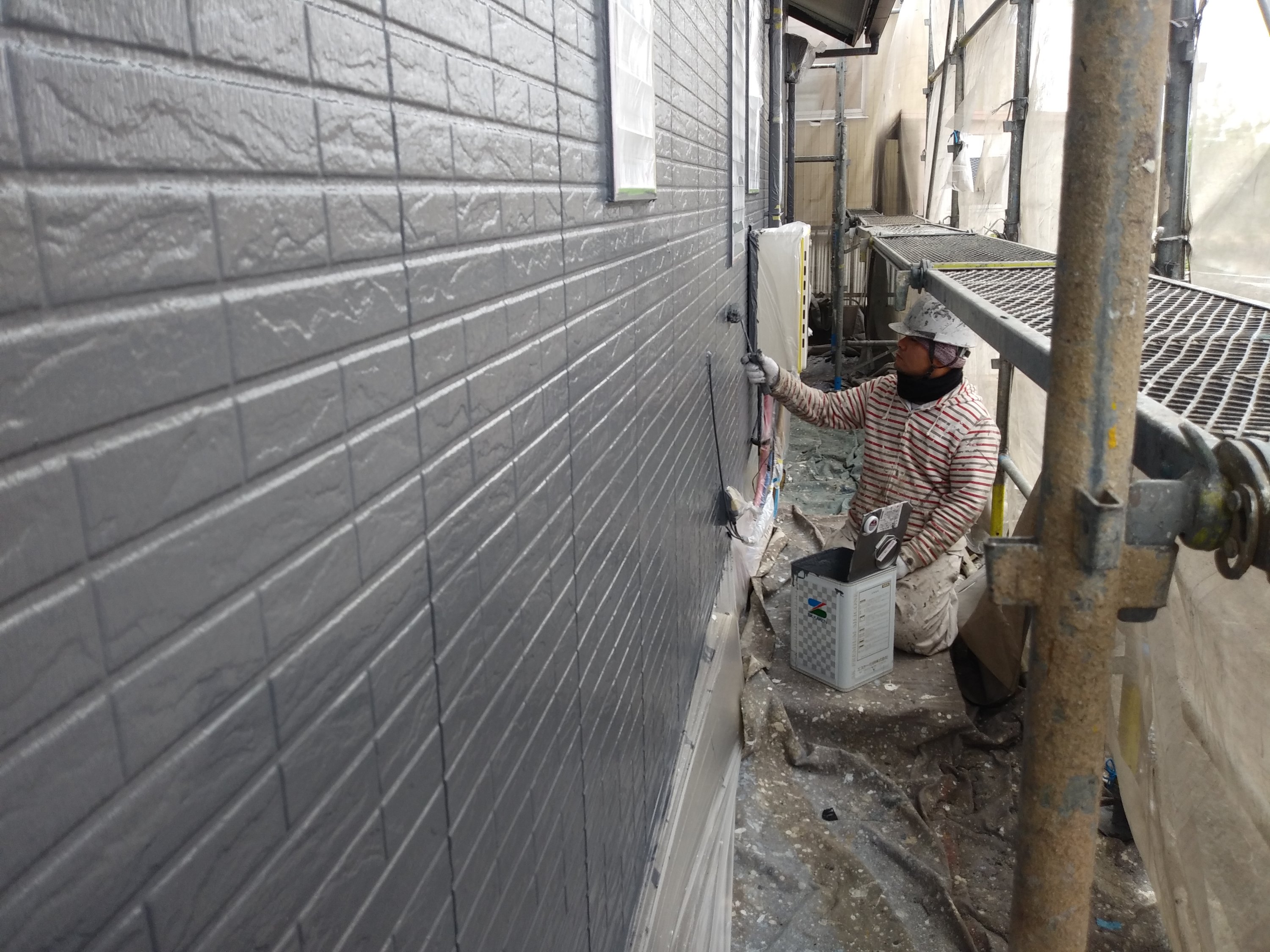 福岡県北九州市八幡西区T様邸施工4日目中間検査外壁中塗り作業