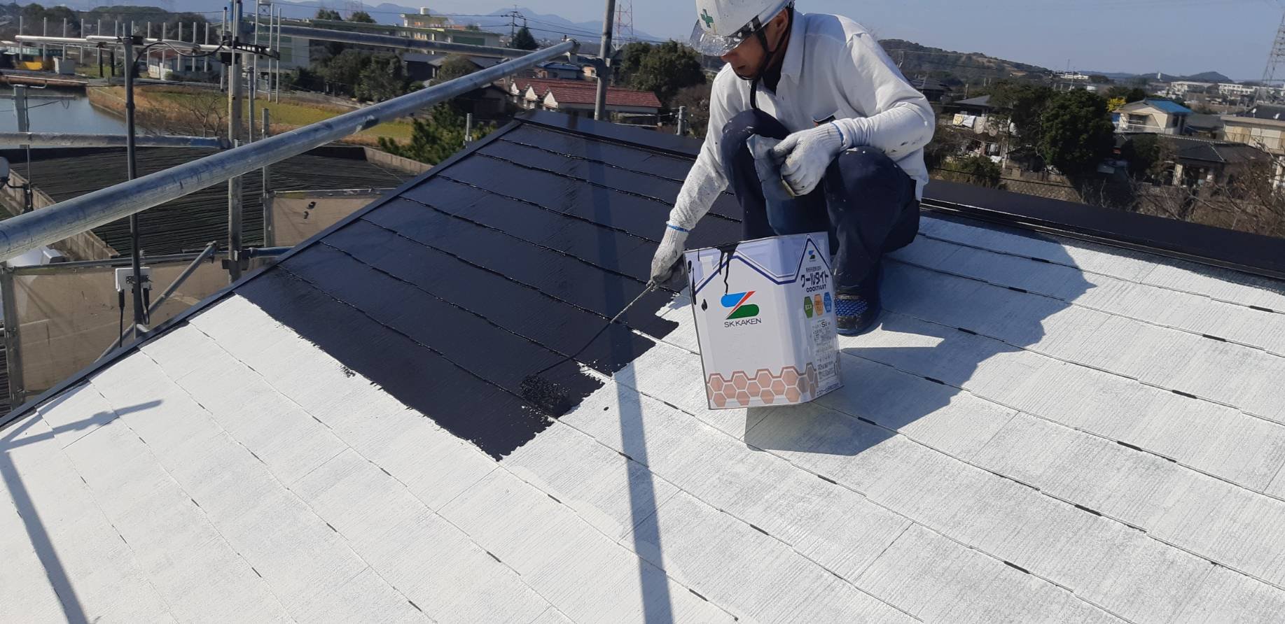 福岡県北九州市八幡西区T様邸施工6日目屋根中塗り付帯塗装作業