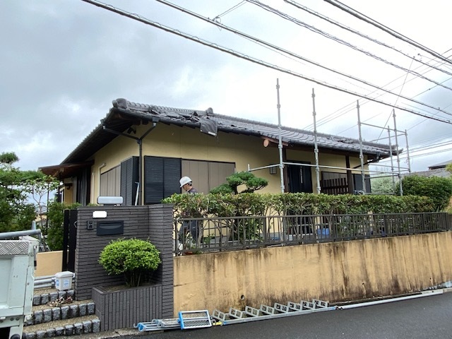 連日の雨で施工期間が長くなりご迷惑をおかけしております。 昨日、新たに仮設足場設置となりました。