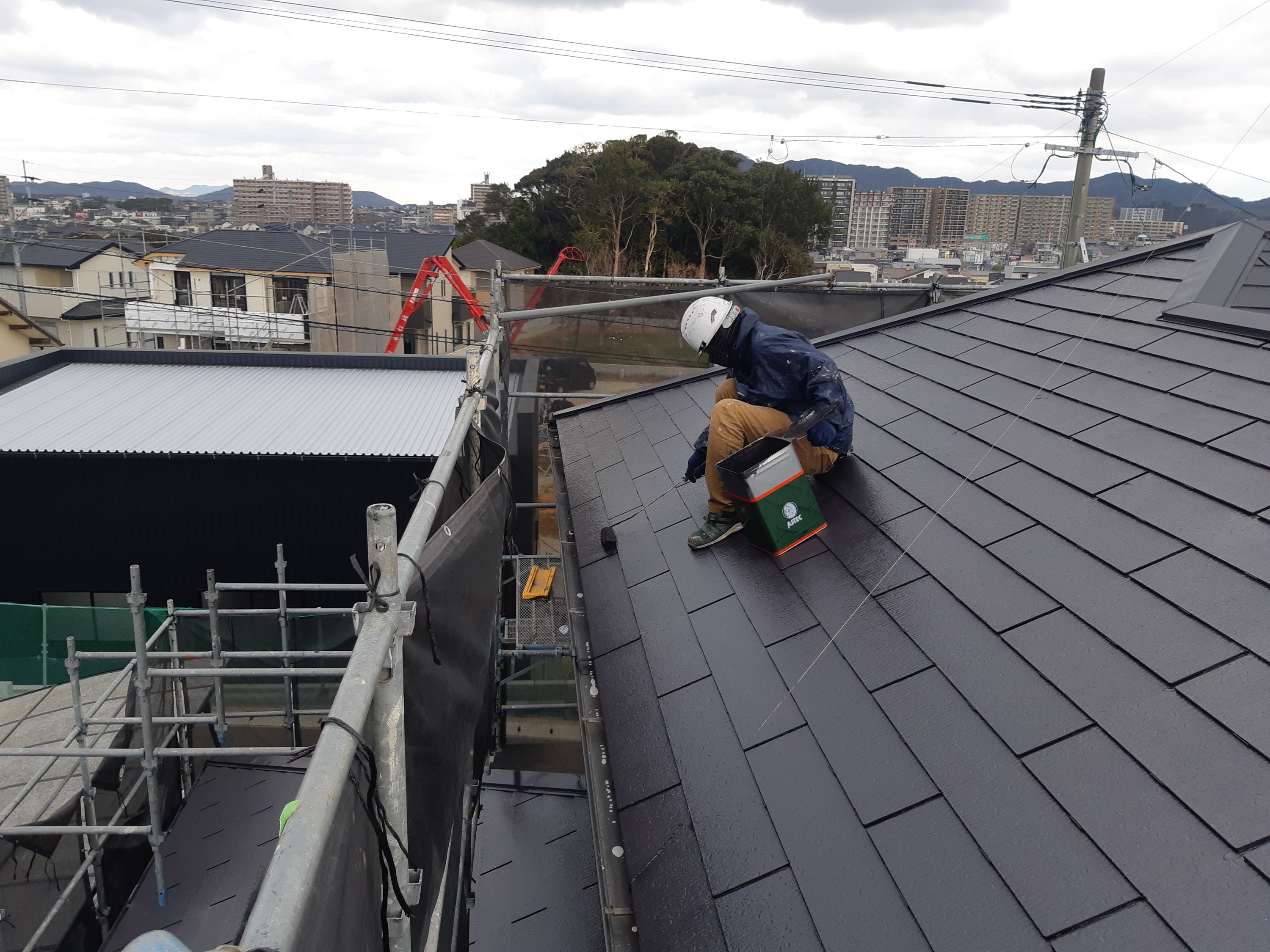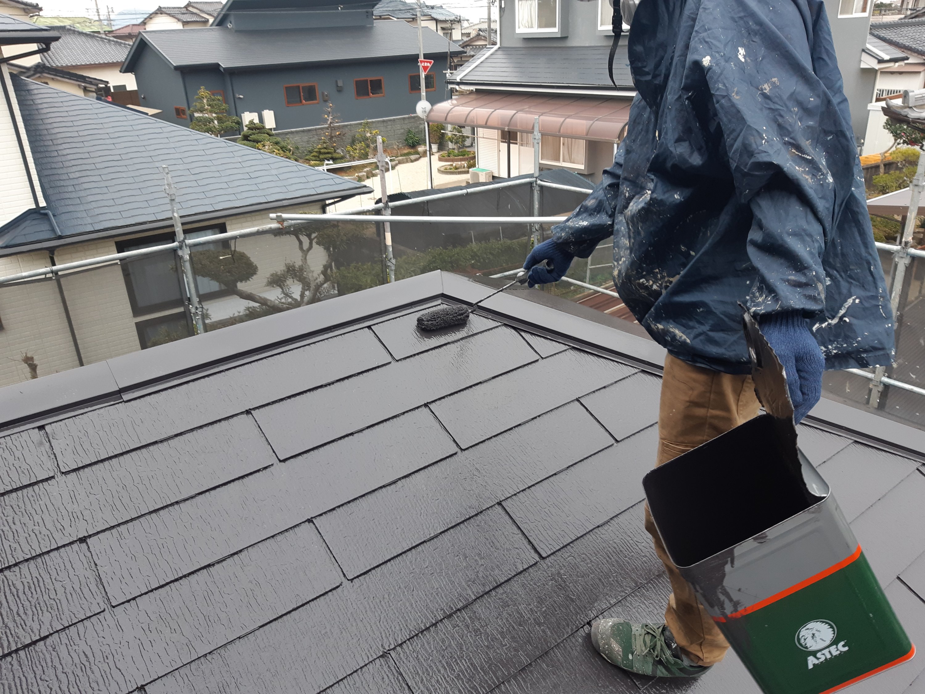 福津市福間南 O様邸施工8日目屋根上塗り作業