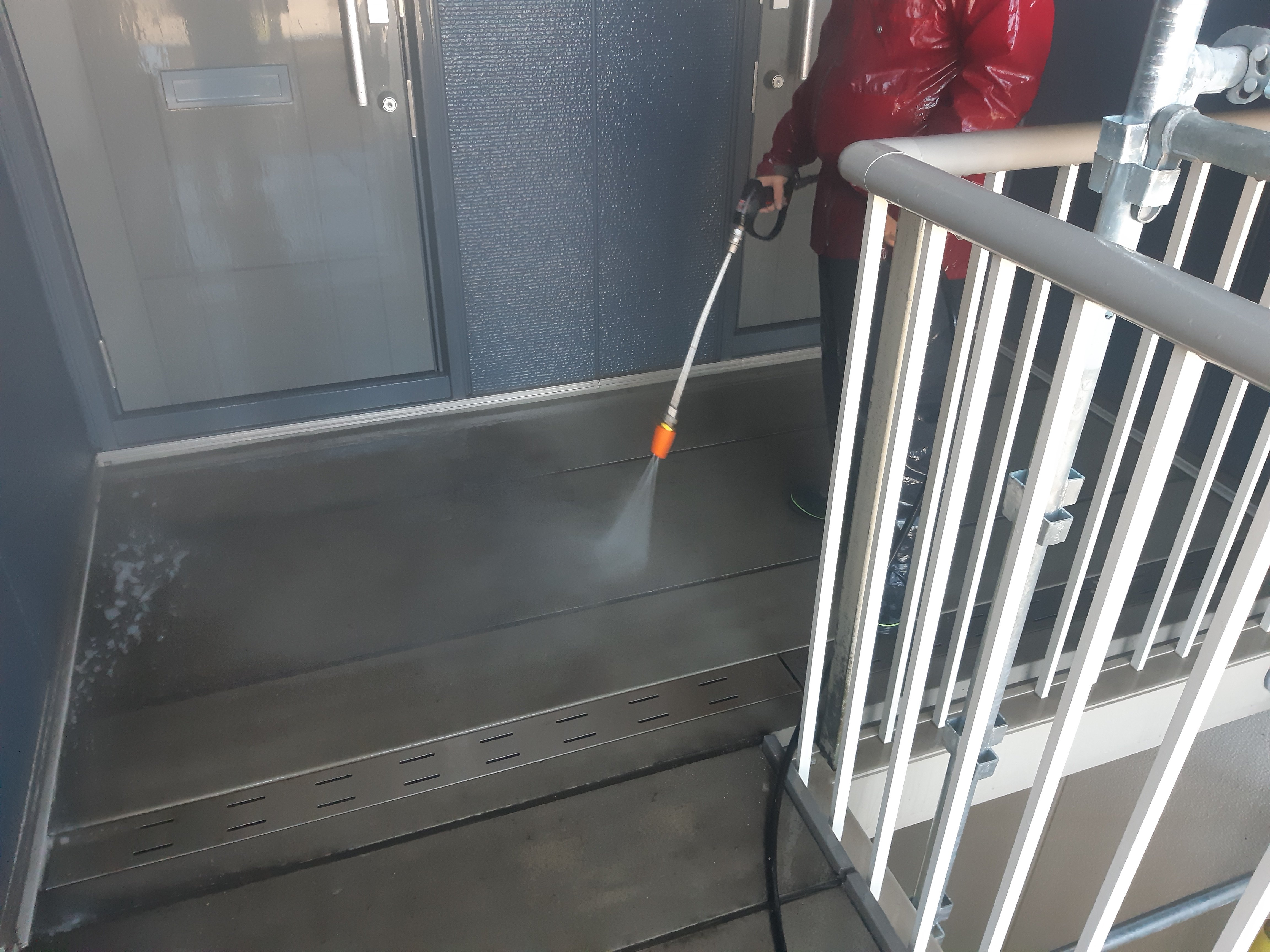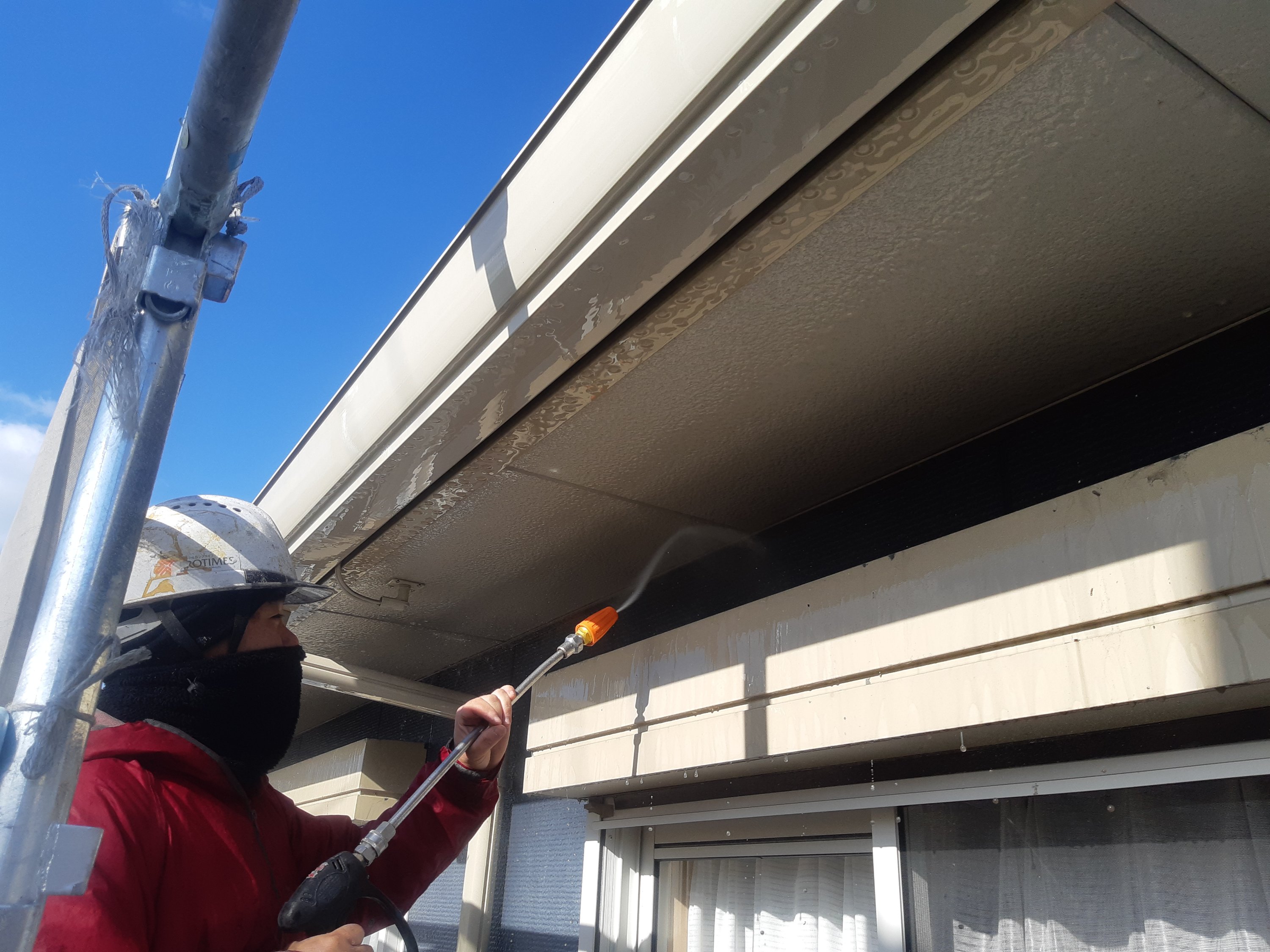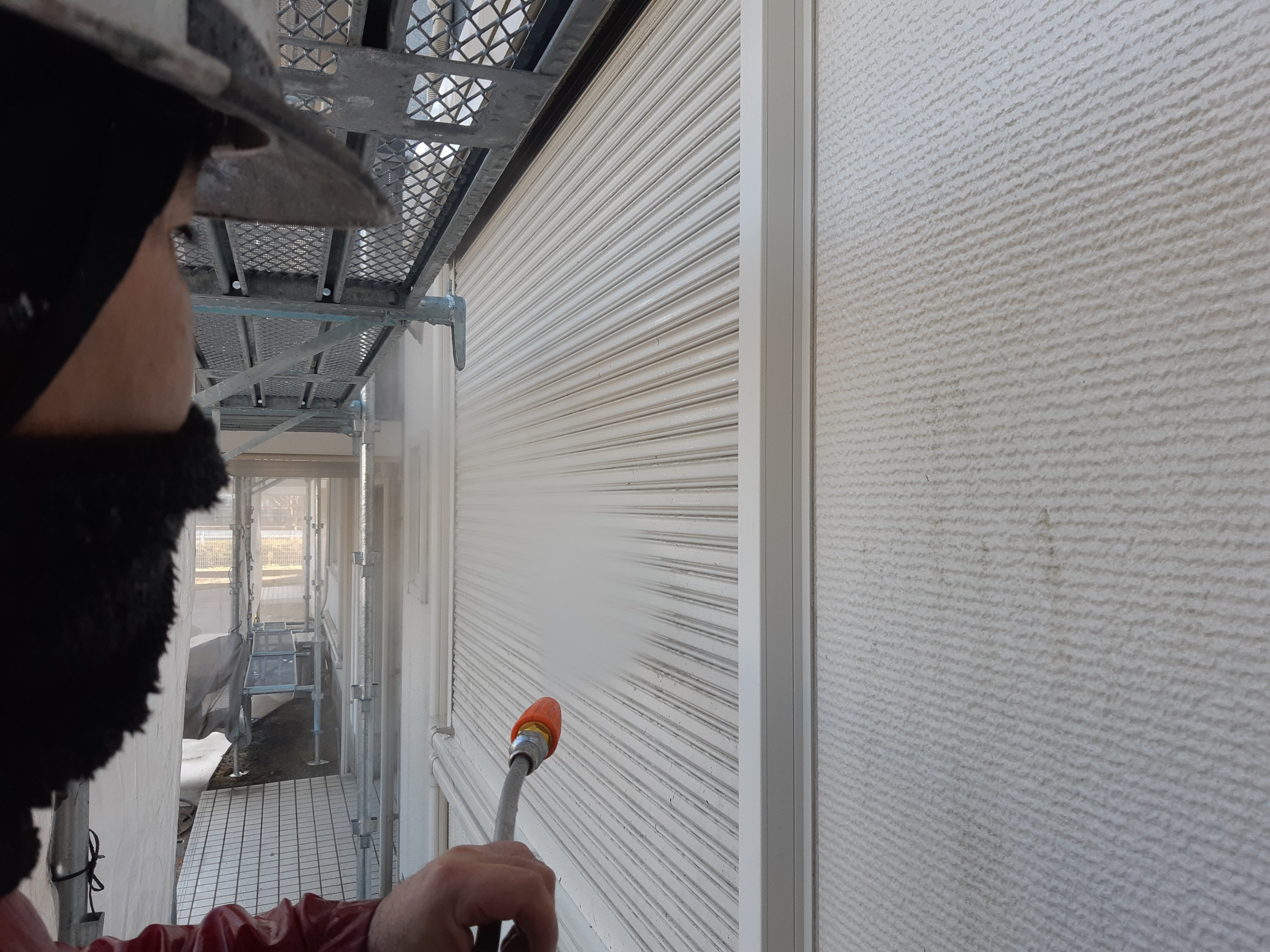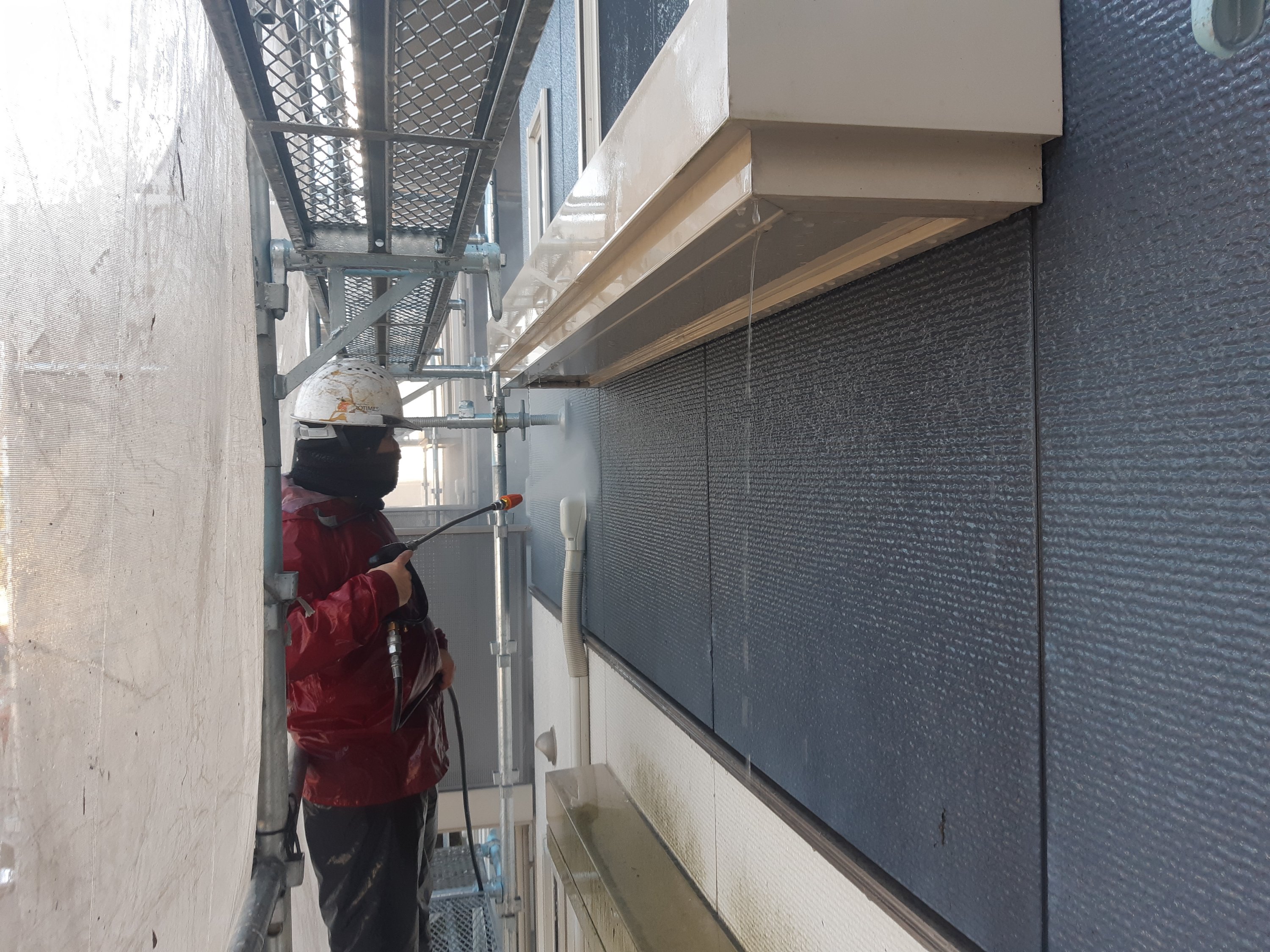 本日より、E棟に現場を移し洗浄作業を行いました。