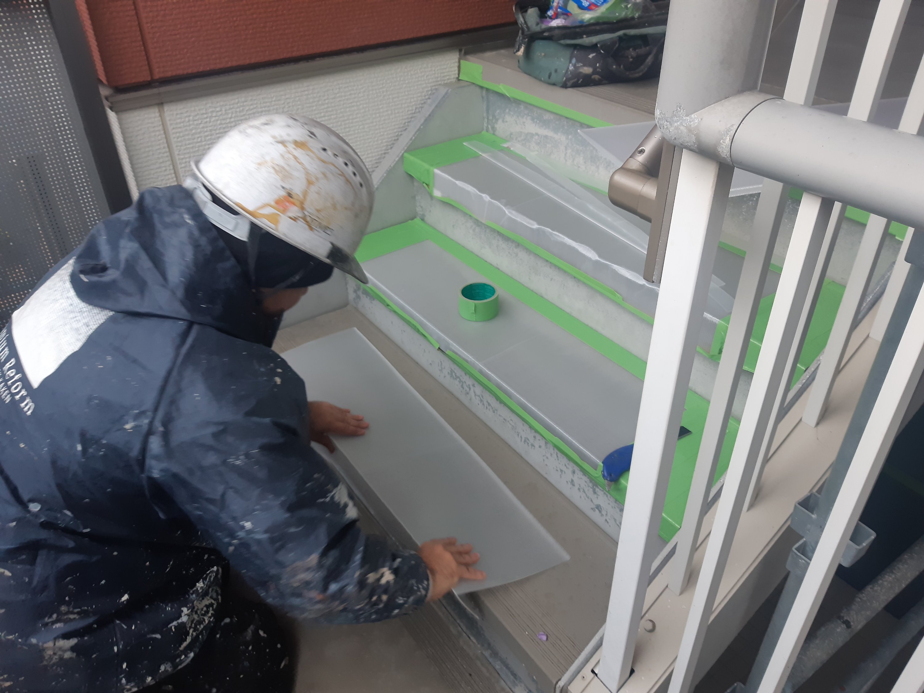 共有通路の階段や土間の養生です。