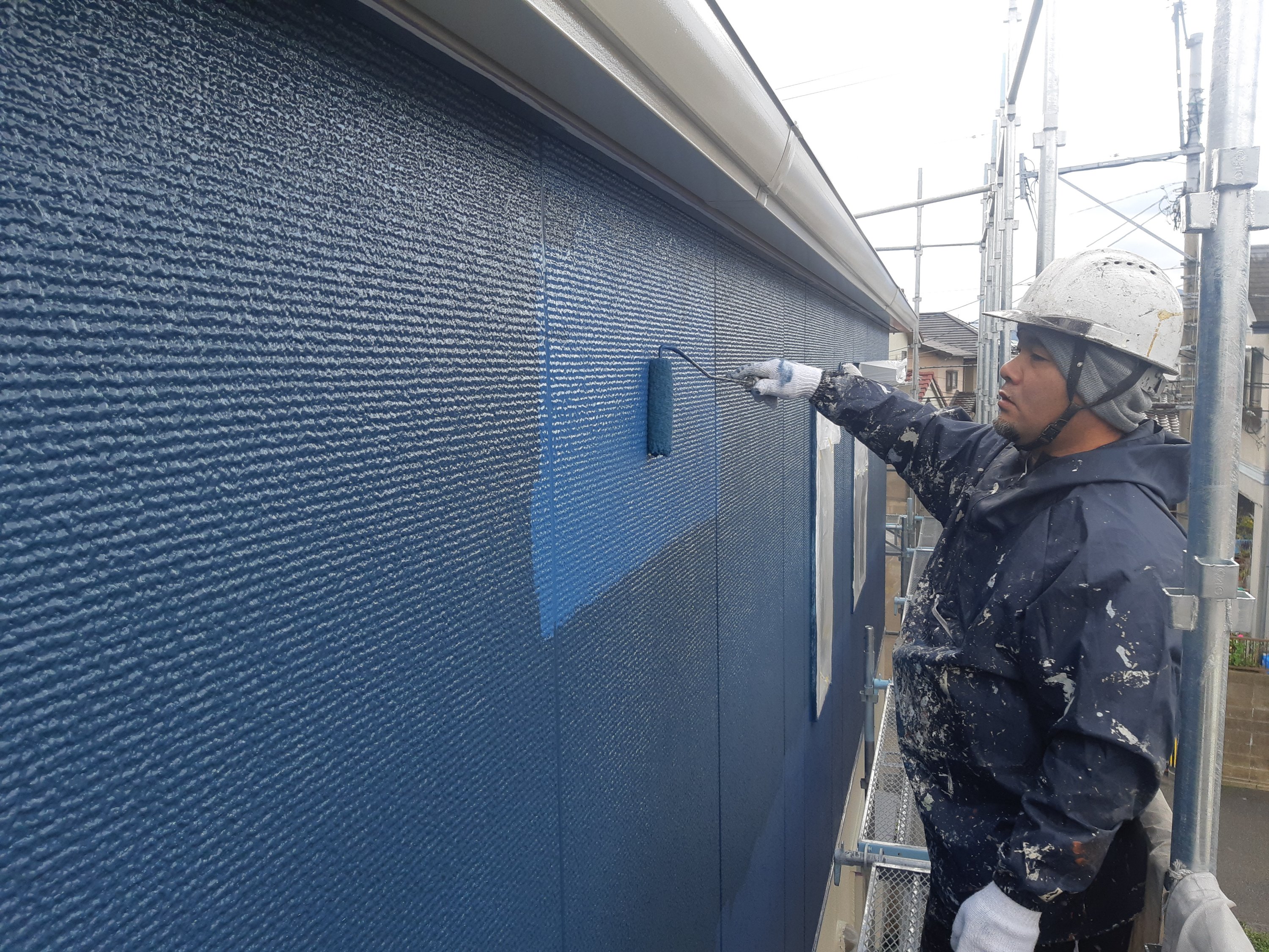 本日は、外壁上塗りを行いました。