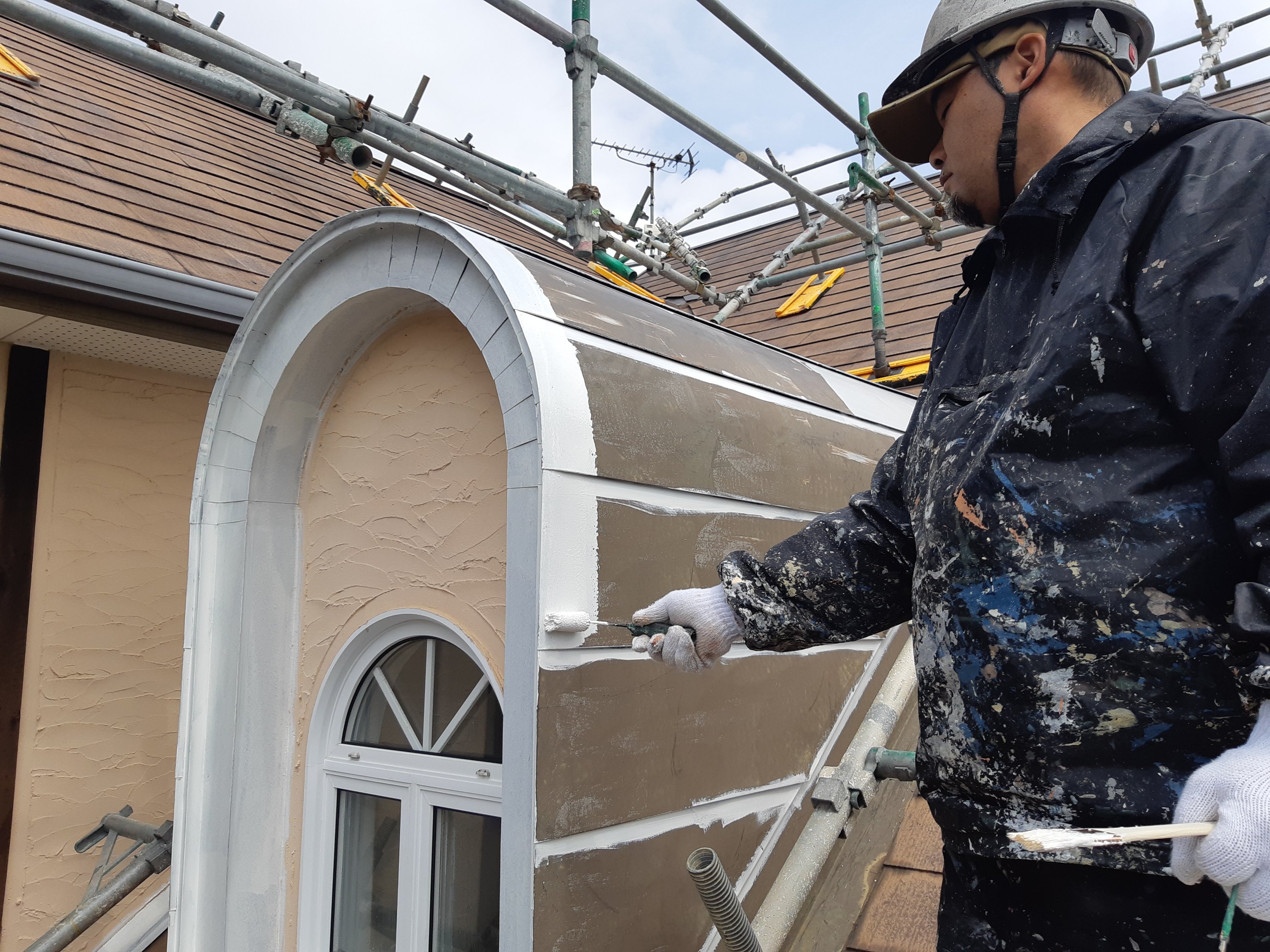 本日は、さび止め・付帯中塗りを行いました。
