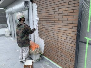 本日は、養生と軒天塗装を行いました。
