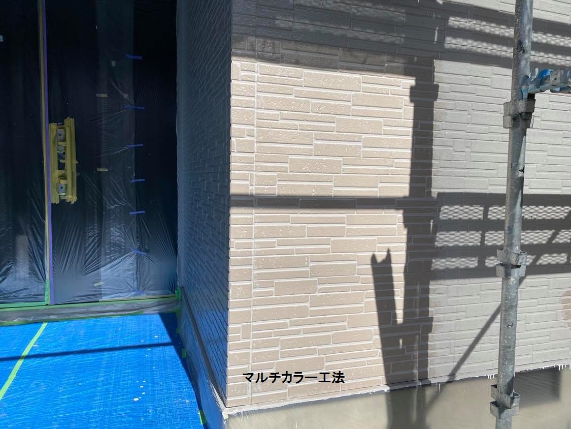今回の塗装工事で現在のサイディングの風合いを大切にしたいとのご要望でマルチカラー工法の塗装をさせて頂くことになりました。