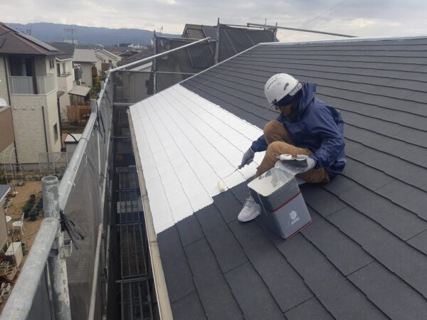 明日は、屋根縁切り、中塗り、外壁下塗りなど予定しています。