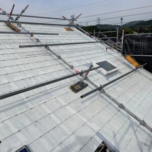 きちんと足場を設置して、安全に塗装作業を行っております!!