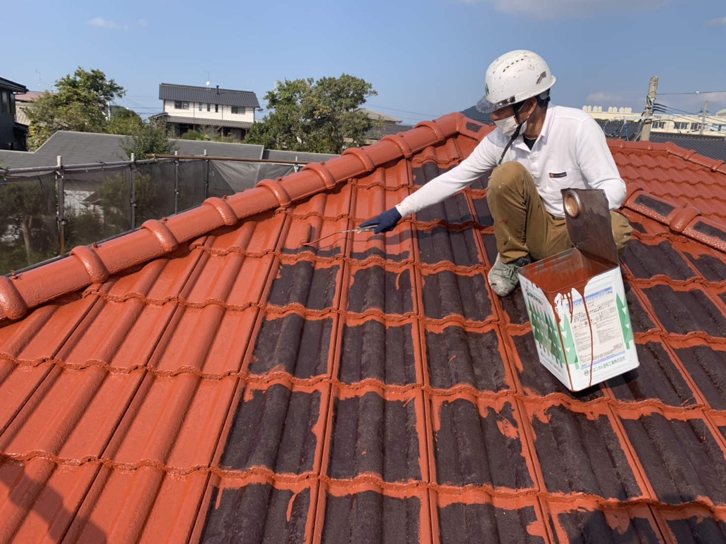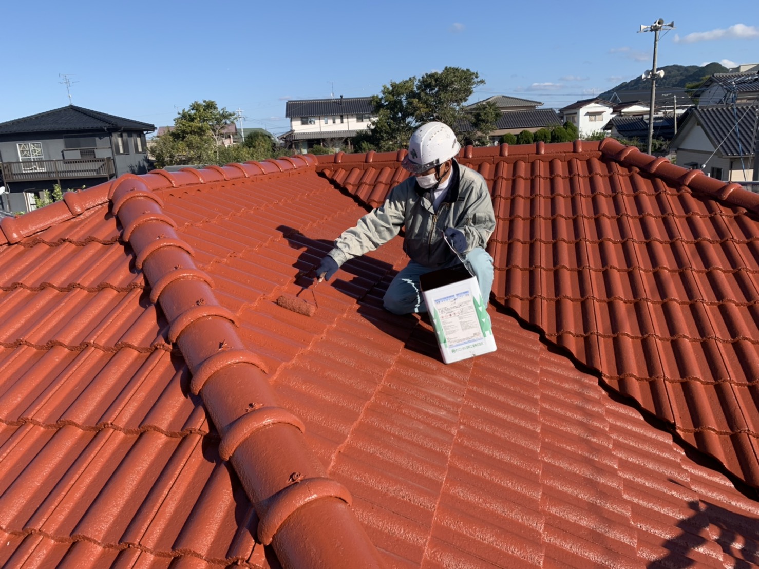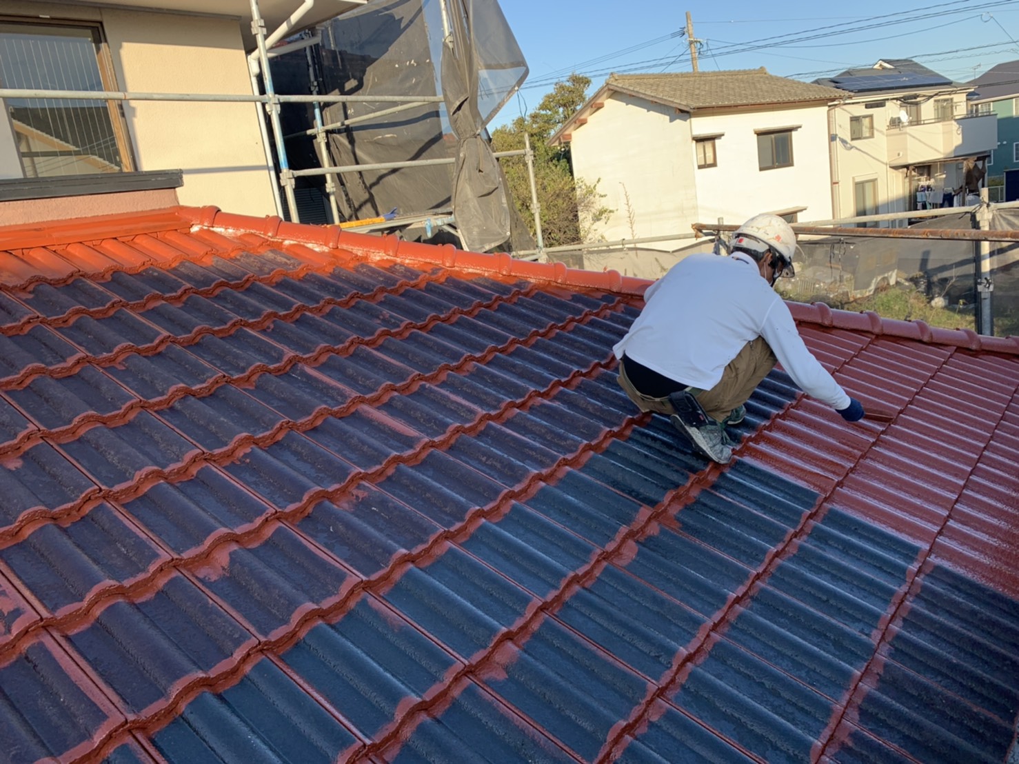 明日の作業内容は屋根上塗り完了検査を受けて完了予定です‼️