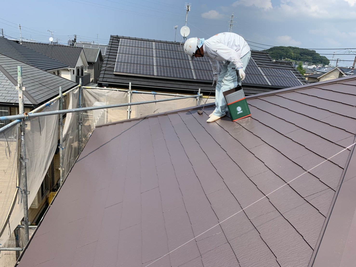 屋根上塗り中