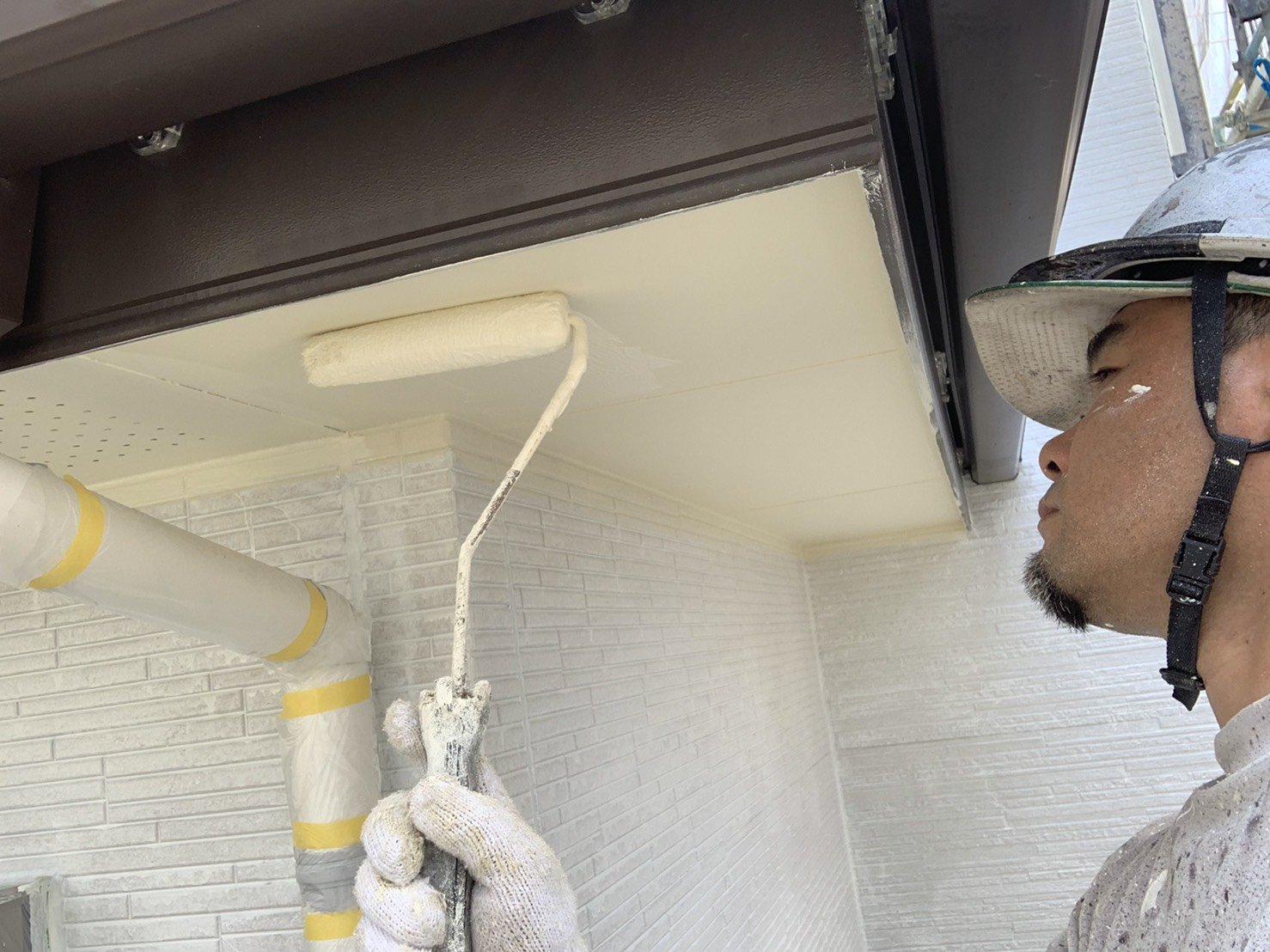 軒天塗装中