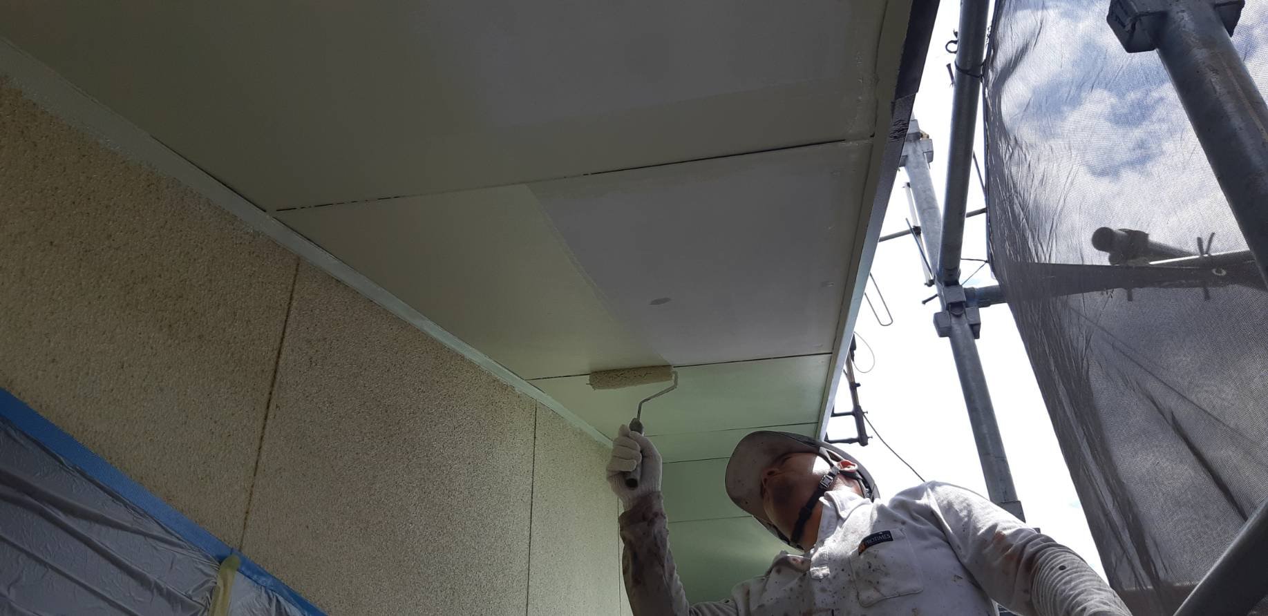 軒天塗装中
