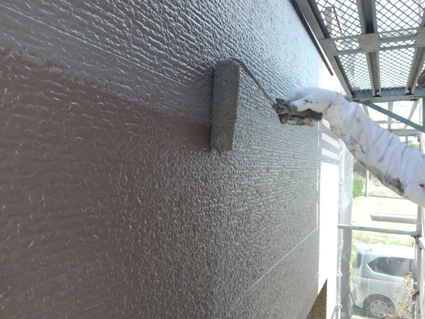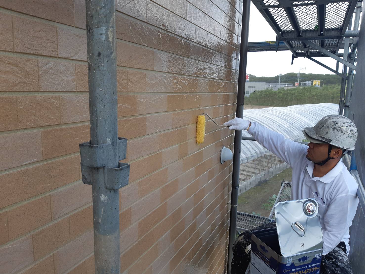 宗像市牟田尻U様邸施工4日目屋根下塗り外壁クリアー一回目二回目作業