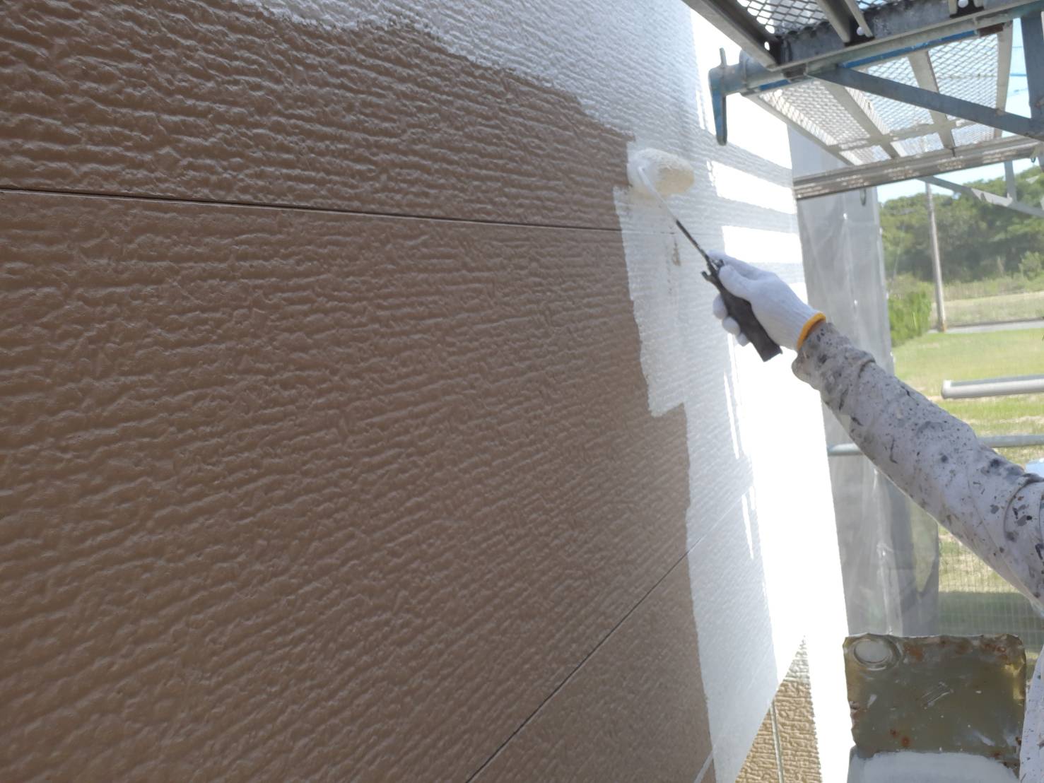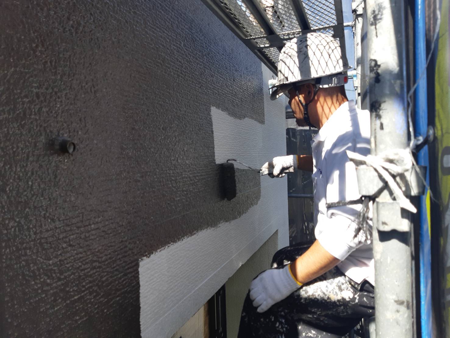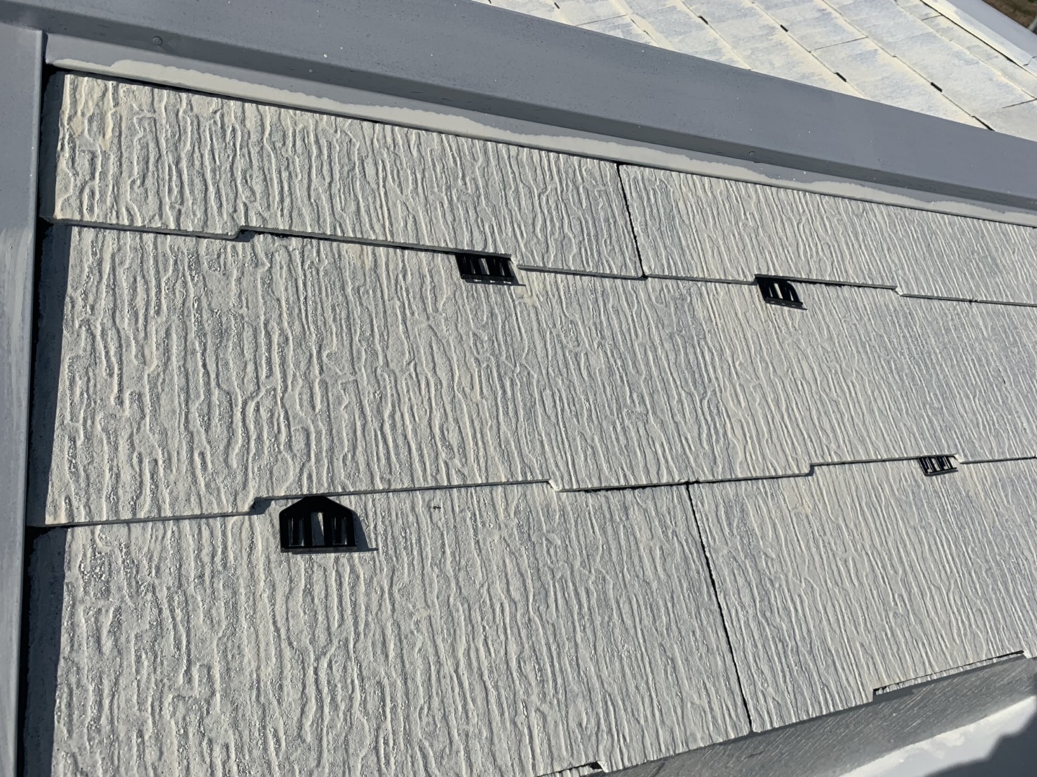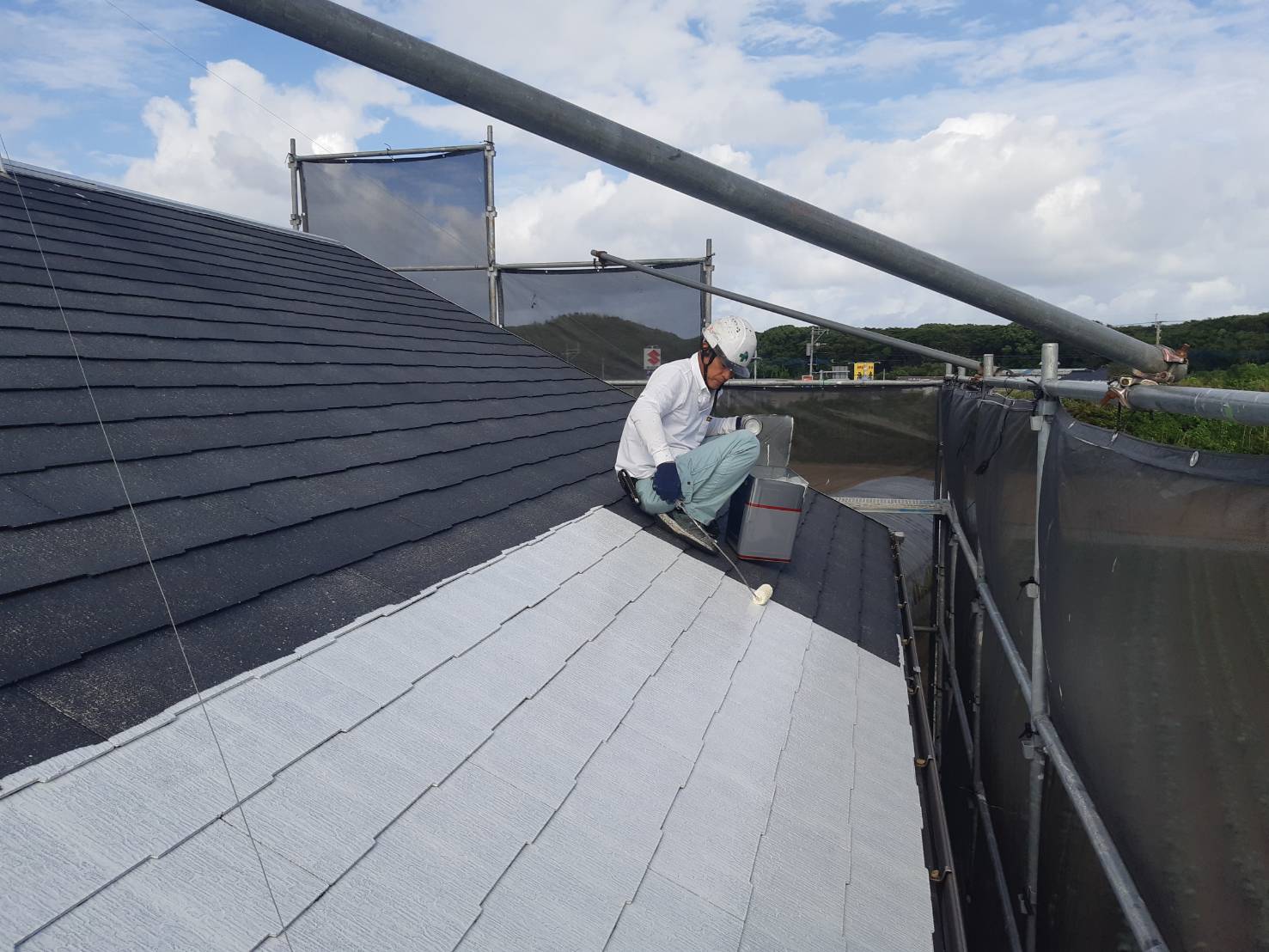 宗像市牟田尻U様邸施工5日目屋根縁切り一部外壁下塗り中塗り付帯塗装作業