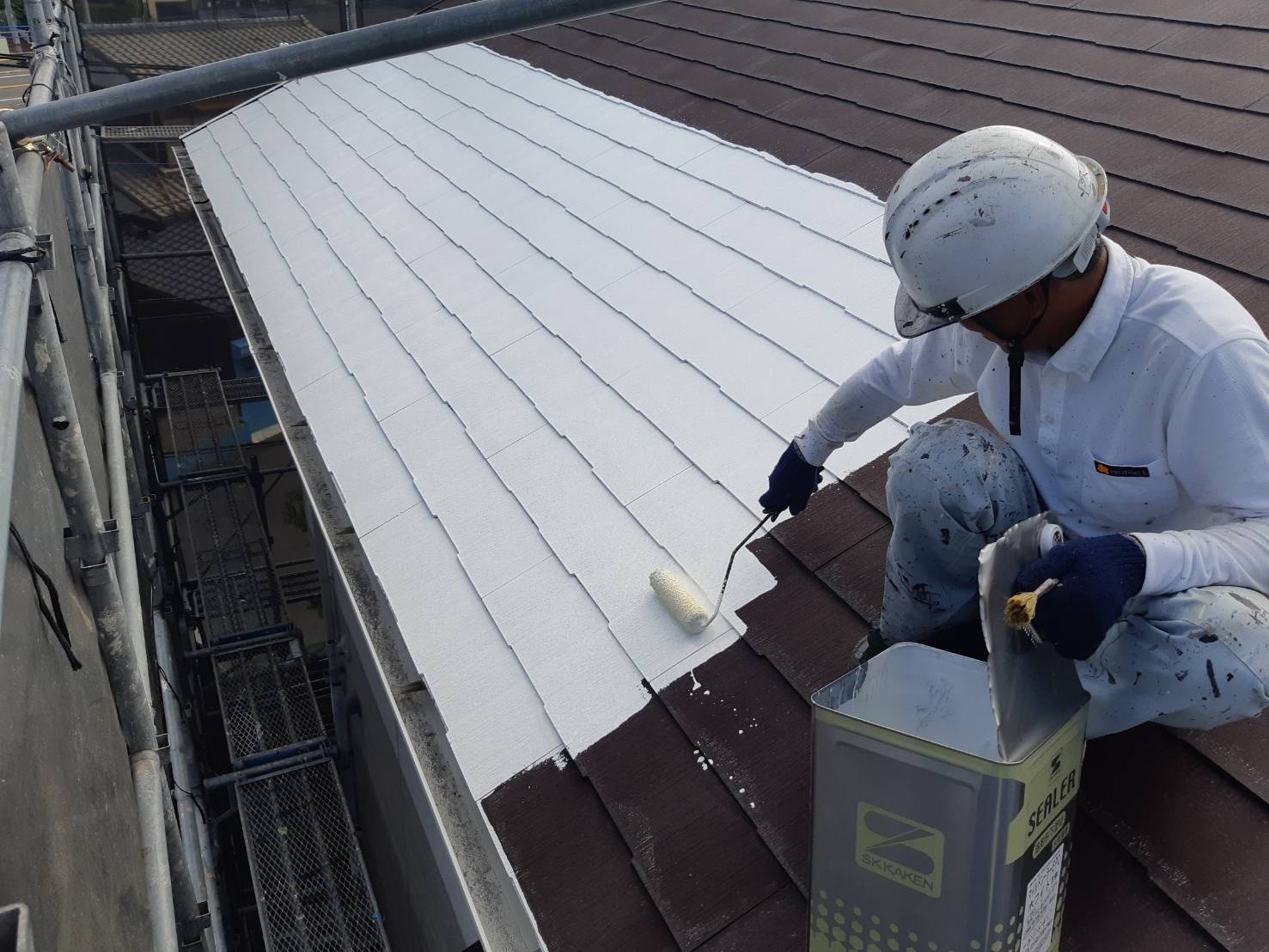 屋根下塗り中