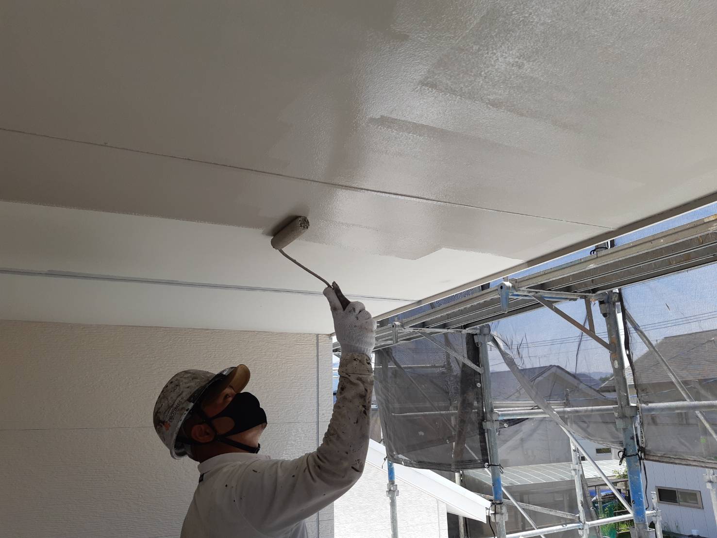 軒天塗装中