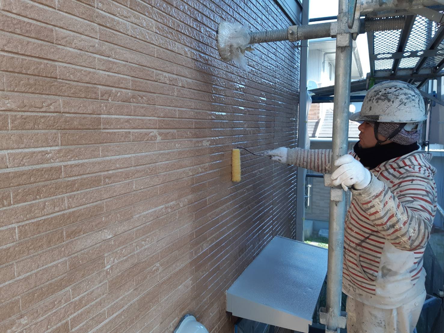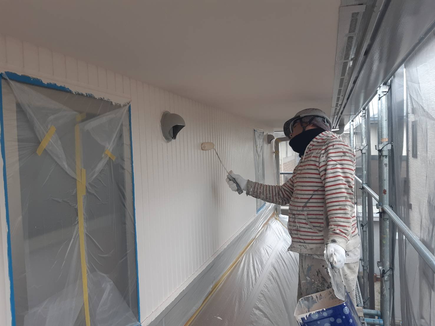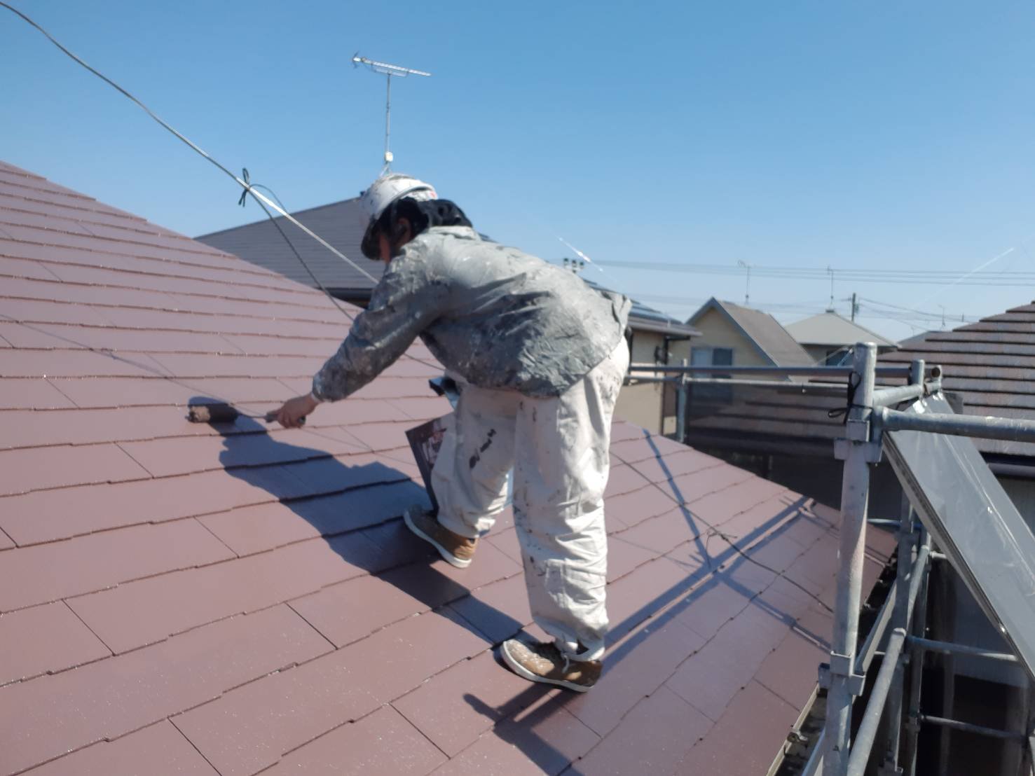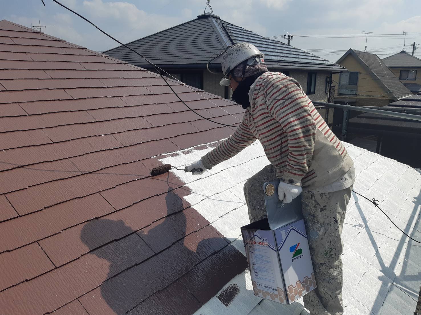福岡県宗像市和歌美台K様邸施工6日目屋根中塗り外壁中塗り付帯塗装作業