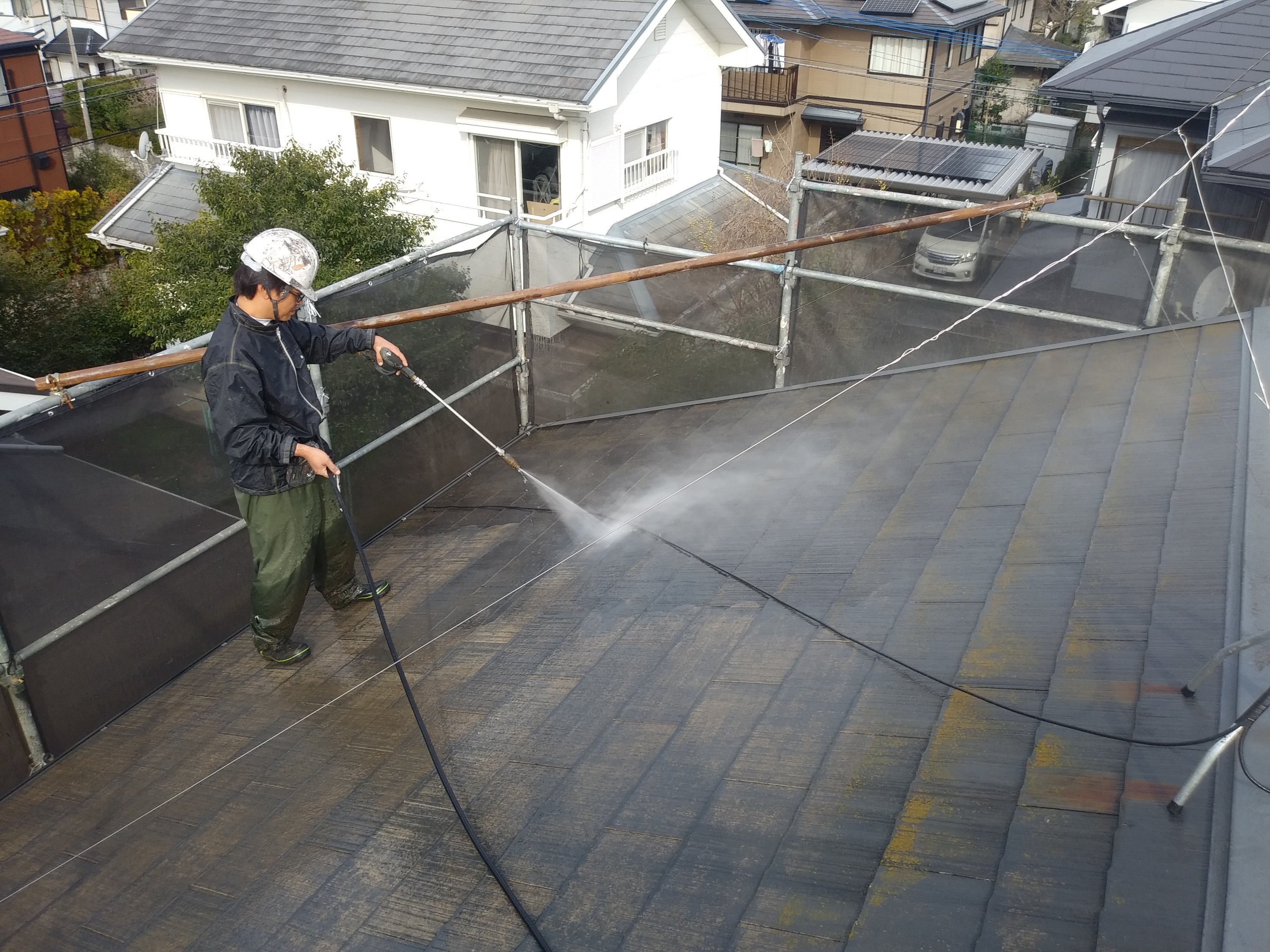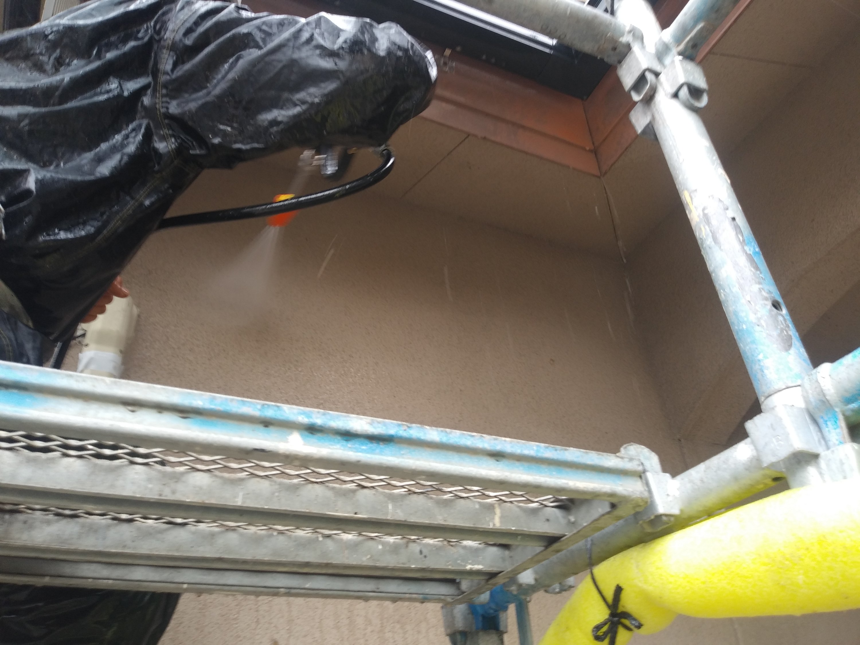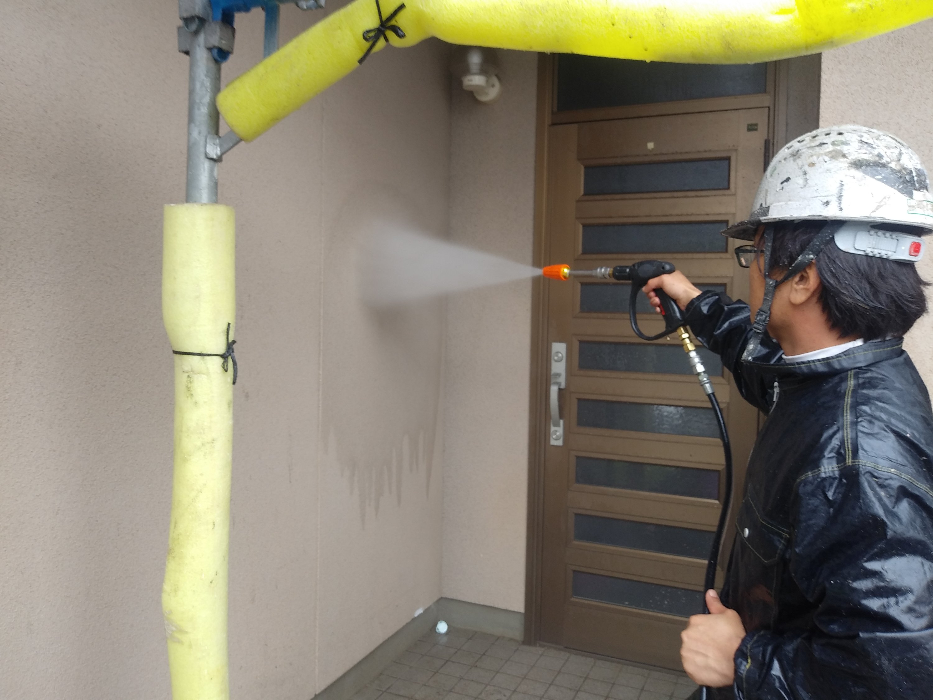 福岡県福岡市東区M様邸施工1日目高圧洗浄作業