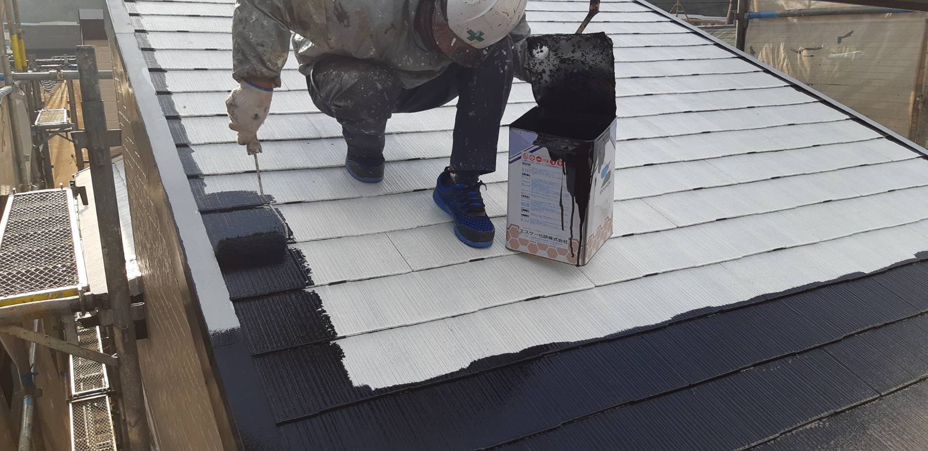 様邸施工4日目屋根中塗り外壁中塗り作業
