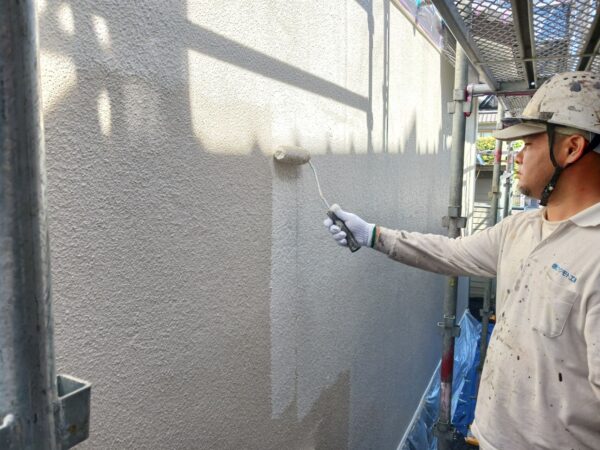 福岡県 宗像市 自由ヶ丘の塗装会社プロタイムズ福岡北店株式会社 フクモト工業の松崎です。‥‥‥‥‥‥‥‥‥‥‥‥‥‥‥‥‥‥‥‥本日は、外壁上塗り作業です。