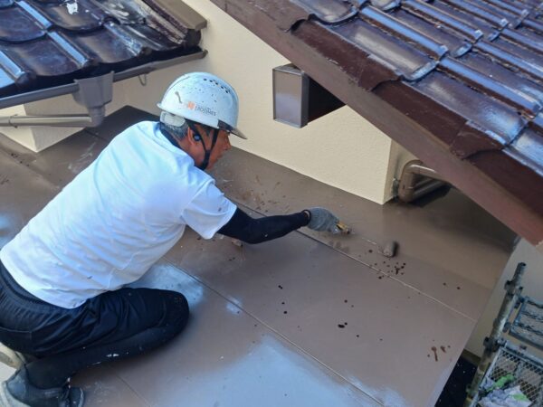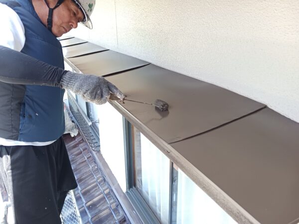 明日は、1F屋根上塗りと、雨戸塗装を予定しています。
