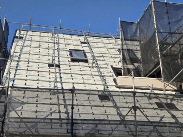 本日は、屋根の目地中塗り作業です。