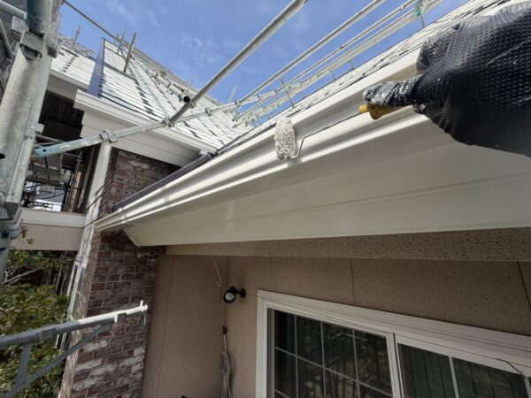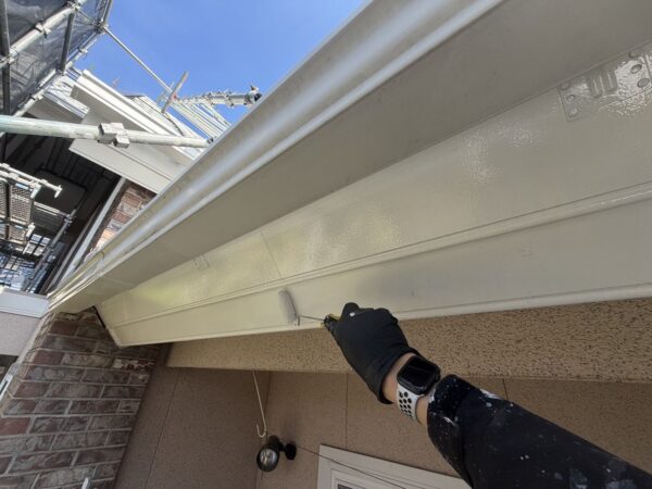 本日も屋根塗装は結露の為、予定を変更し付帯塗装の続きを行いました。