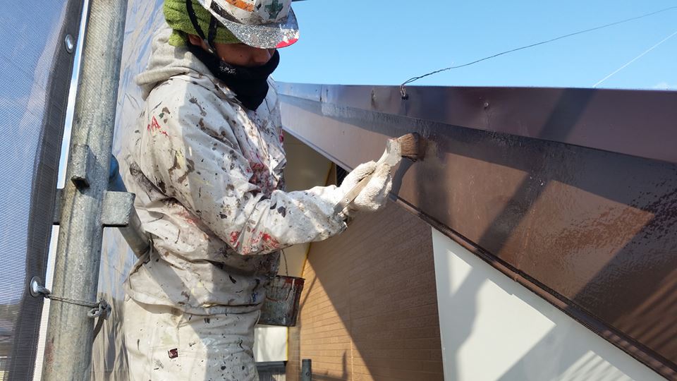 ホーム » 現在進行中の現場ブログ 本日は外壁下塗りと屋根縁切り(タスペーサー)、破風・樋の塗装です。 » 10959546_407799182720506_7672819252034056413_n