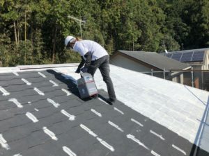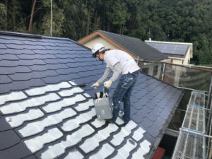 本日は屋根の下塗り、縁切りなど行いました。