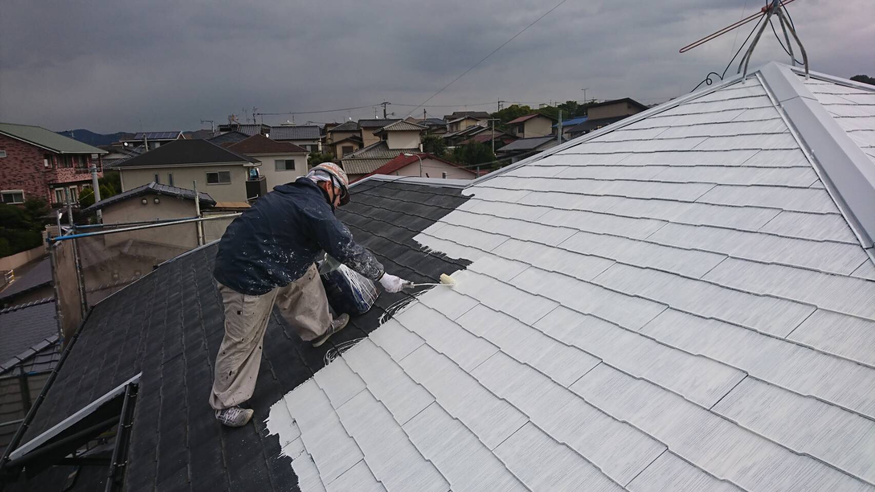 福岡市東区Y様邸屋根下塗り5日目