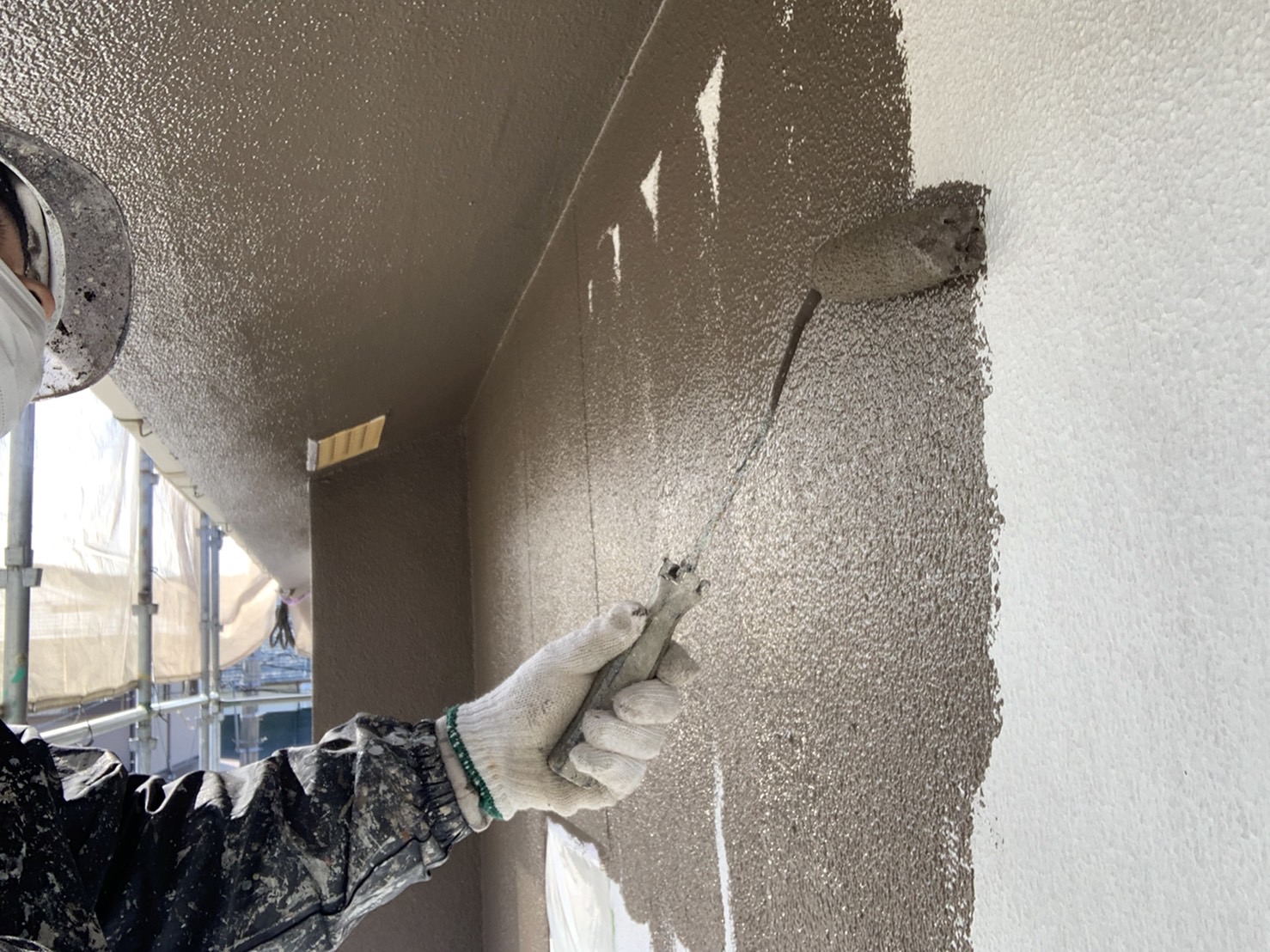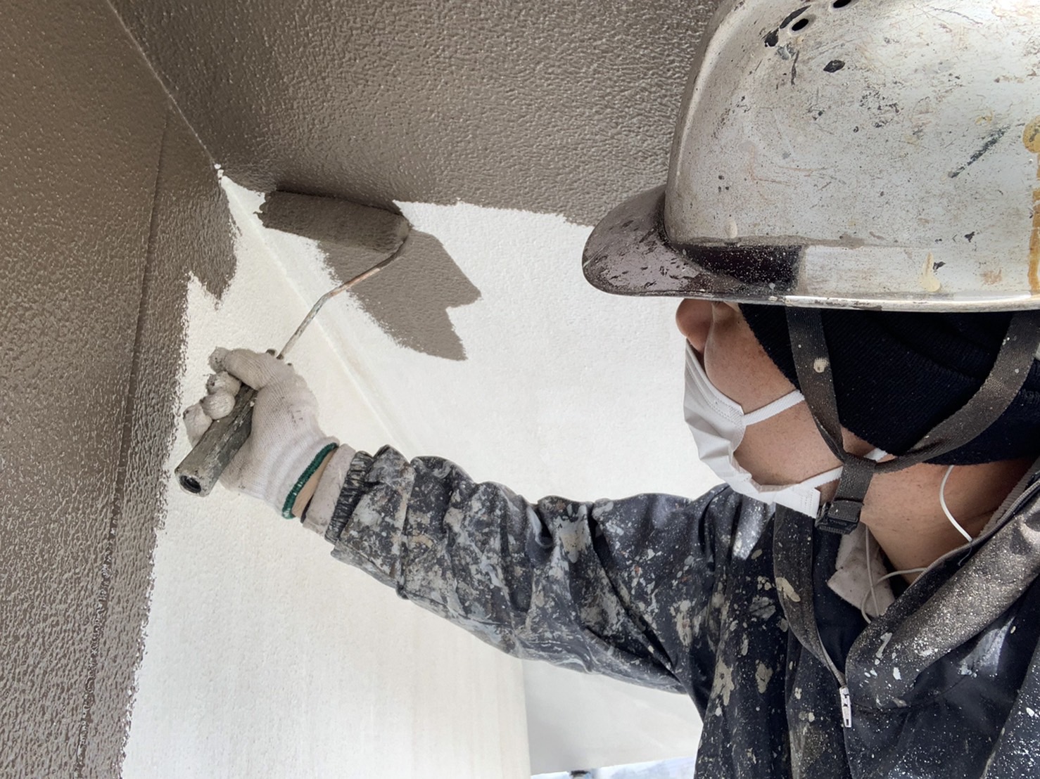 宗像市自由が丘南n様邸施工6日目外壁中塗り2F屋根上塗り作業