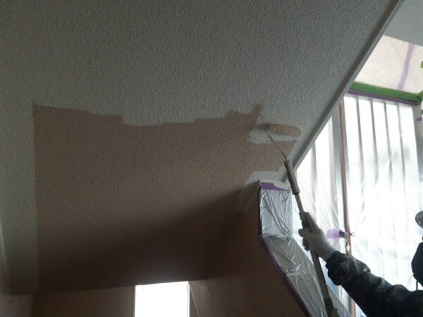 Kマンション様施工20日目付帯塗装階段室軒天塗装作業