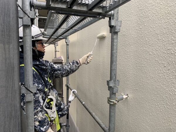 外壁上塗り中