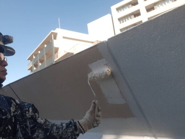 Kマンション施工62日目外壁下塗り中塗り塗装作業