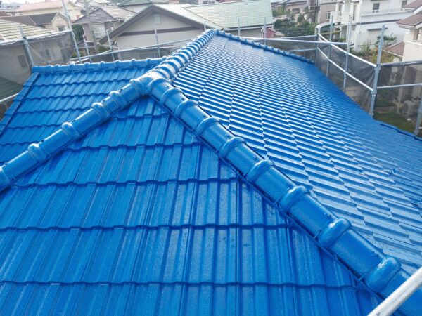 ホーム » 宗像市朝野H様邸施工6日目外壁下中塗り屋根下塗り作業