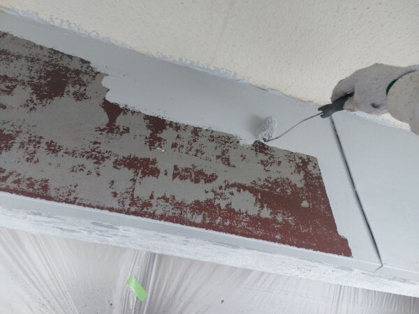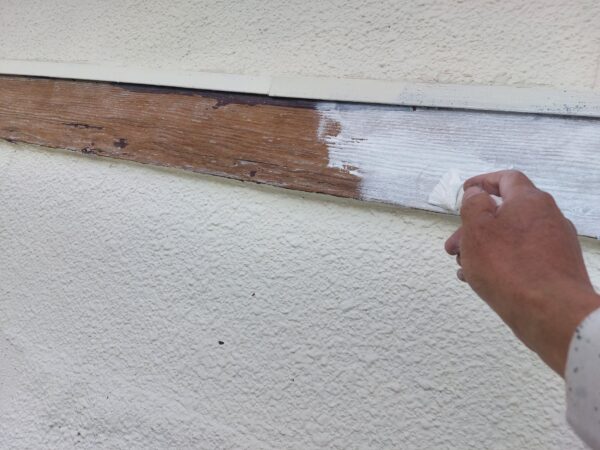 福岡県宗像市土穴F様邸施工2日目養生木部下塗りさび止め作業