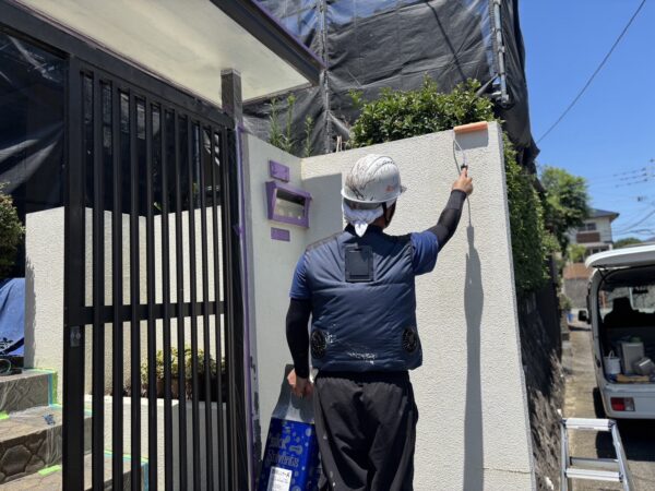 塀の下塗りを行いました