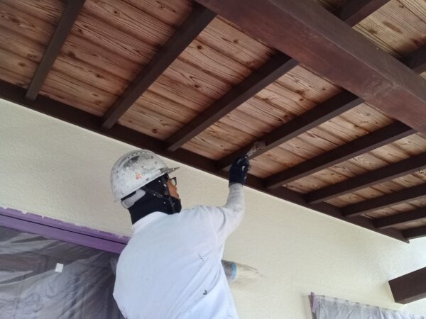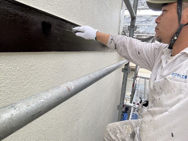 福岡県宗像市自由ヶ丘T様邸2日目養生さび止め付帯塗装作業