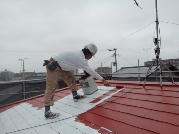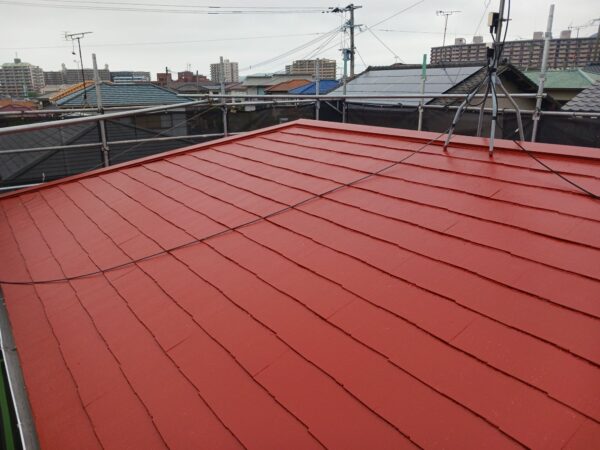 屋根中塗りも行いました。