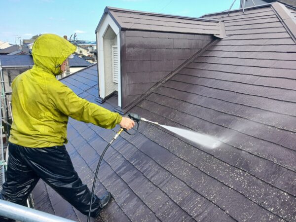 宗像市ひかりヶ丘T様邸施工9日目屋根上塗り作業
