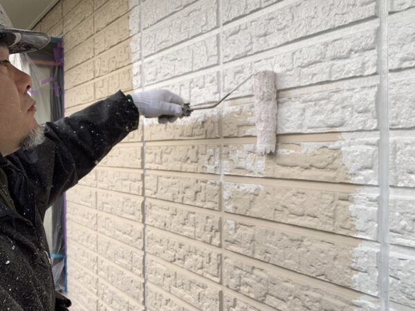 宗像市ひかりヶ丘T様邸施工5日目屋根縁切り外壁中塗り作業