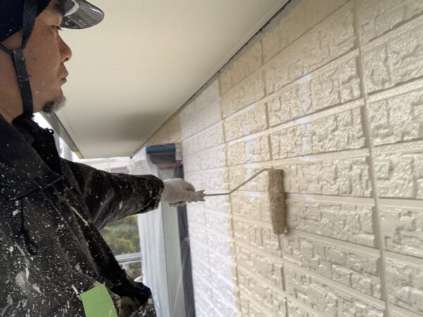 宗像市ひかりヶ丘T様邸施工4日目屋根縁切り外壁下塗り作業